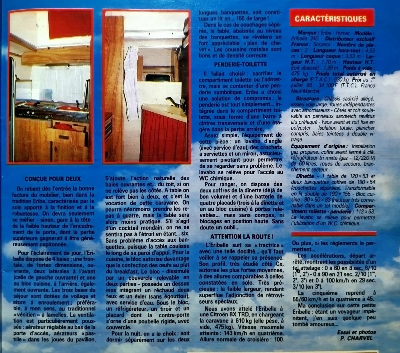 Merci pour les infos supplementaires , d autres modeles existent . Des mardi je verrai avec Eriba , mais je pense que la mienne est bien une 340 , merci a Christophe pour ces conseils bonsoir a tous ! Perrey