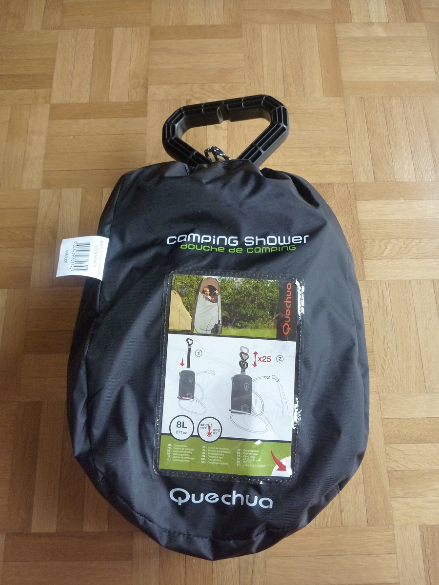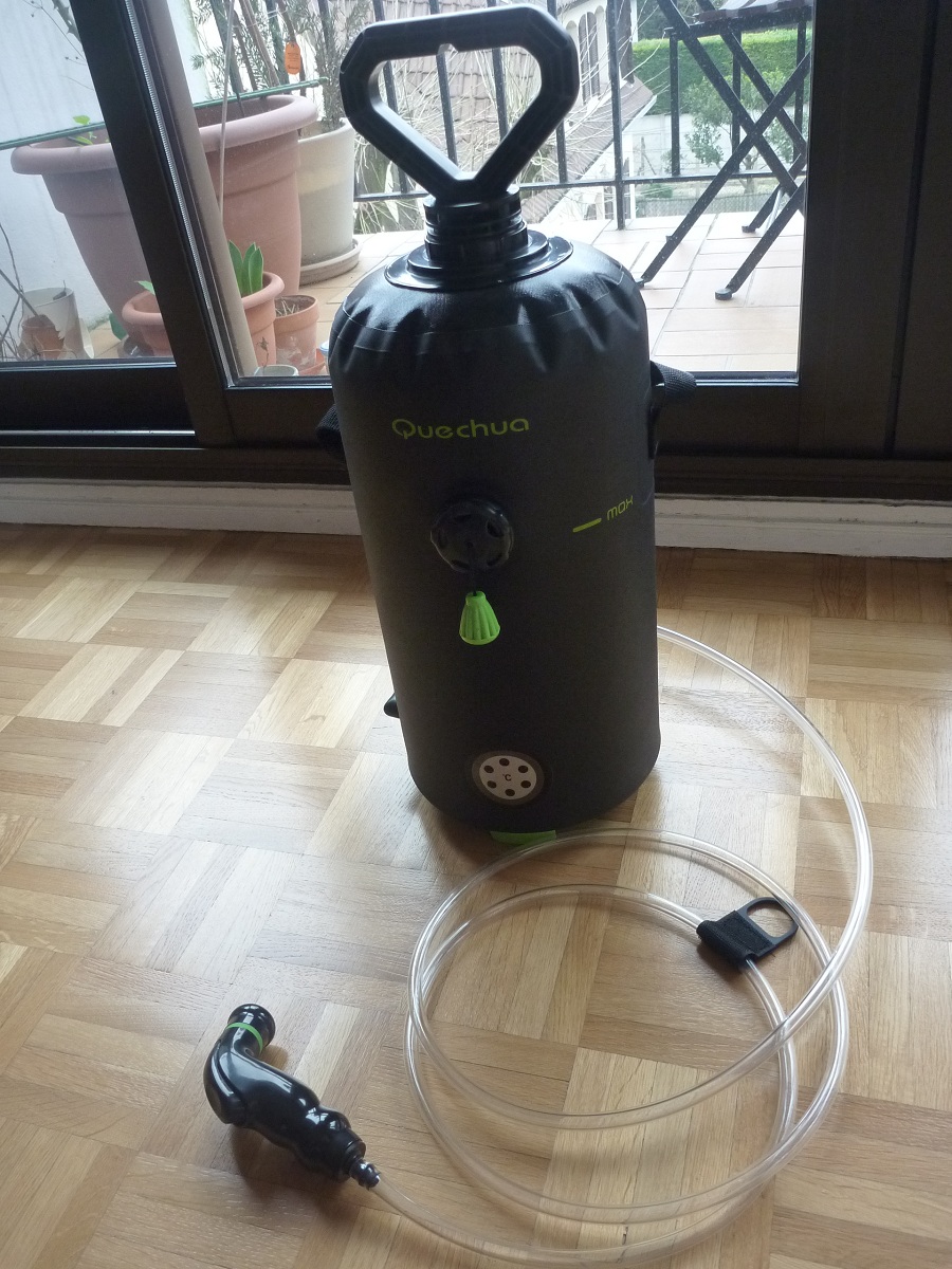 Réservoir : 30 litres Poids : 6 Kg *Douche mobile complète avec jerrican 20 litres, 4 m câble d'alimentation 12V avec prise allume cigare double normes, douchette avec flexible nylon lg 2.20 m, pompe immergée 12 litres /minute *Douche mobile TURBO SHOWER composée d'une pompe immergée 12 V équipée d'un interrupteur, de 5 m de câble électrique avec fiche allume cigare, d'un pommeau de douche avec son support et 2 m de tuyau. *Douche Solaire en PVC non toxique, léger, contenance 22 litres environ.