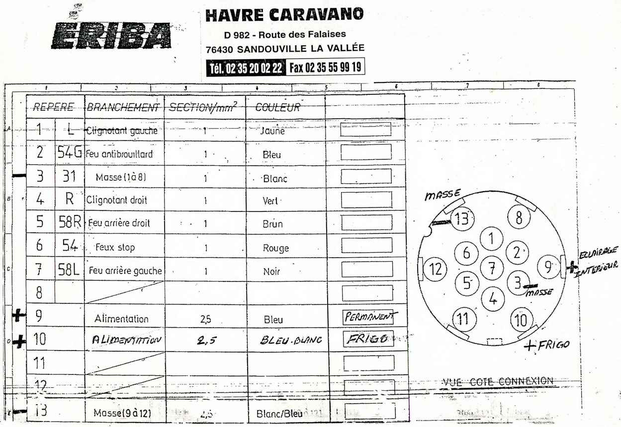 voici le schéma électrique 12 volts pour les prises Feder-Multicon 7 plots + 6 contacts