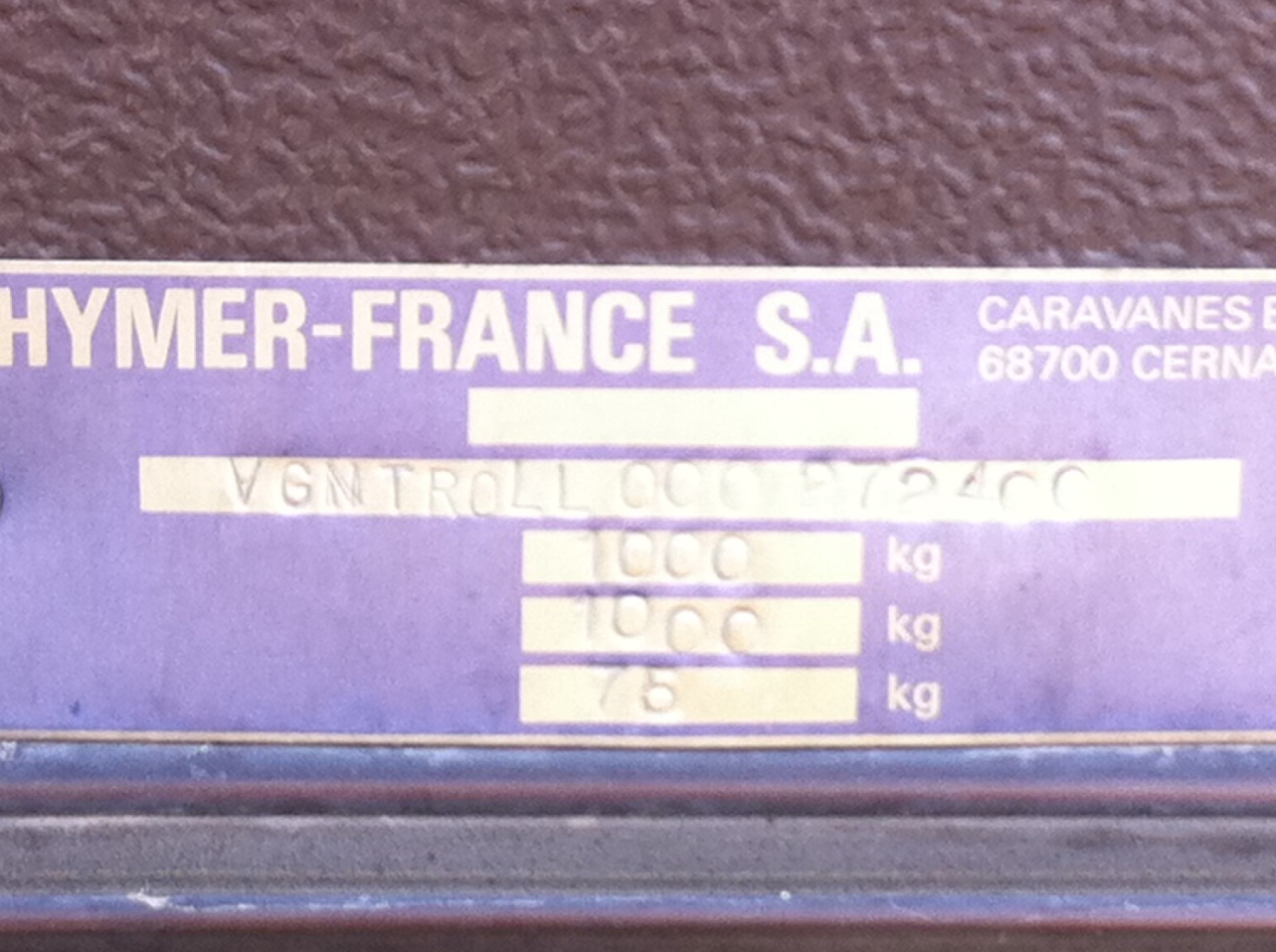 Voici La plaque de notre Eriba Troll Manhattan d'Octobre 1987
