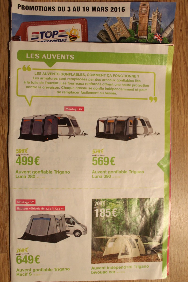 Voici une Pub que j'ai reçu, une prochaine promotion et a l'intérieure ...une sur les Auvents Gonflables