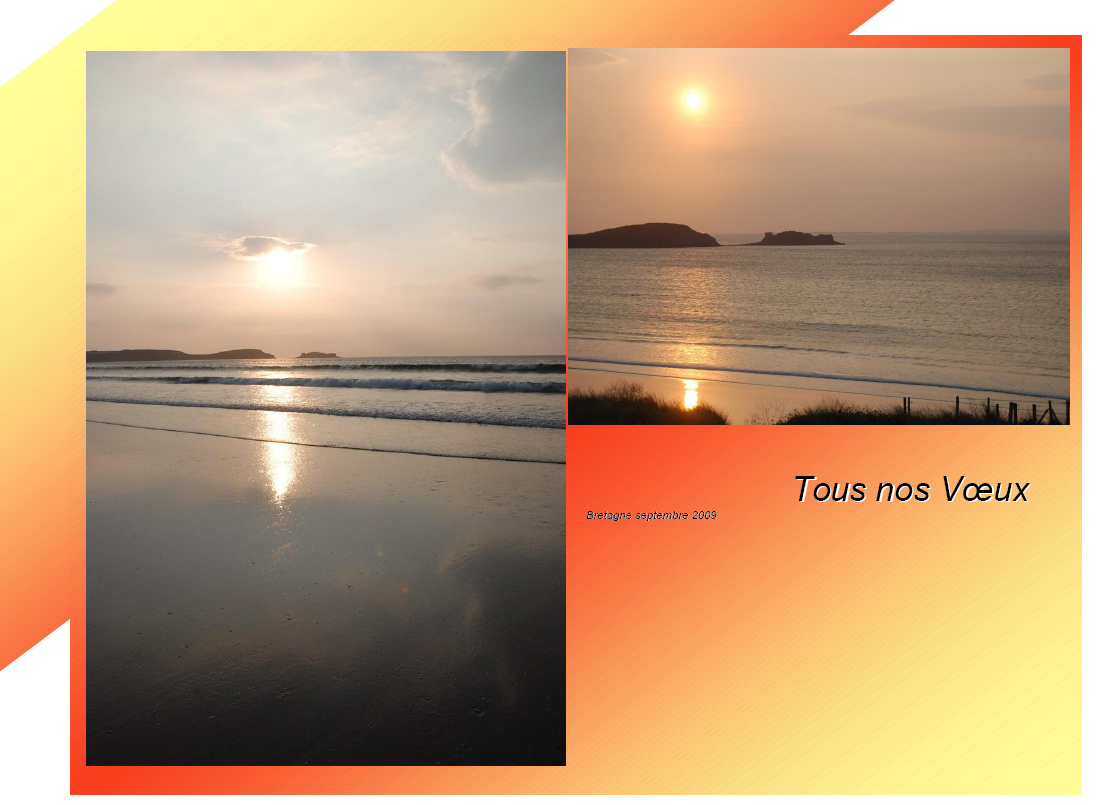 Que l'année qui commence apporte à chacun d'entre vous santé, bonheur et réussite. Je souhaite que le courage et la perséverence de ceux qui en on fait preuve l'année pasée sera recompensée en 2010 et que tous vos projets de quelque nature qu'il soient se réaliseront.
