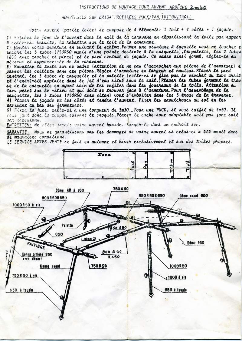 la toile est d’époque mais en bon état pour le tubage j'ai du adapter mon nouveau auvent donc il faudra soit déjà avoir un tubage " Ardèche " soit compléter le tubage existant : c'est très simple suffit de trouver quelques tubes manquants et de composer suivant les schémas trouvés dans ce forum ...