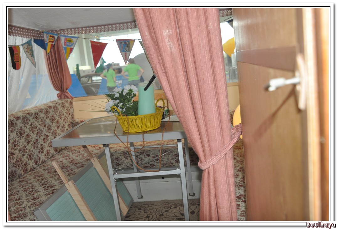 La seule française de l’expo ; aucune notice. Remarquer le panneau de limitation de vitesse apposé vraisemblablement par un plaisantin. J'ai zappé la partie de l'expo consacrée aux camping-cars ; je laisse ce soin à Jean-Marc. Cependant j'ai craqué pour celui-ci avec son salon sur le toit.