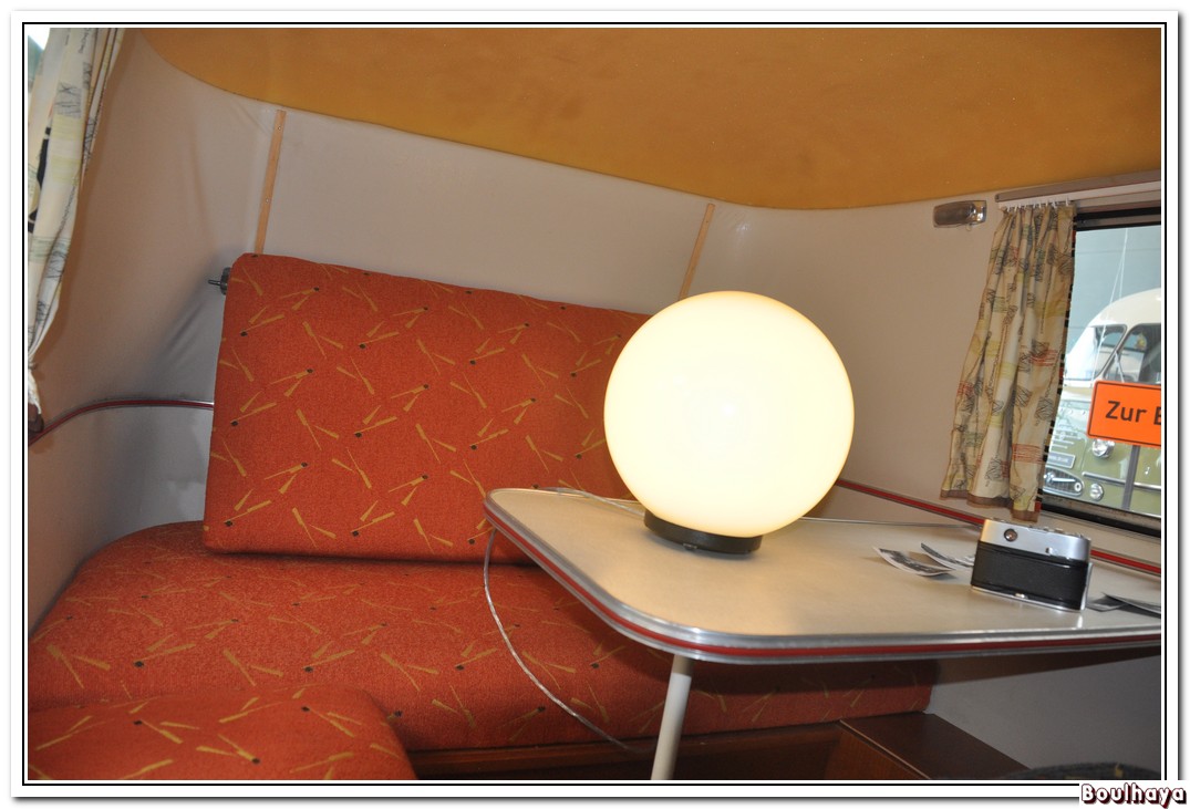 La seule française de l’expo ; aucune notice. Remarquer le panneau de limitation de vitesse apposé vraisemblablement par un plaisantin. J'ai zappé la partie de l'expo consacrée aux camping-cars ; je laisse ce soin à Jean-Marc. Cependant j'ai craqué pour celui-ci avec son salon sur le toit.