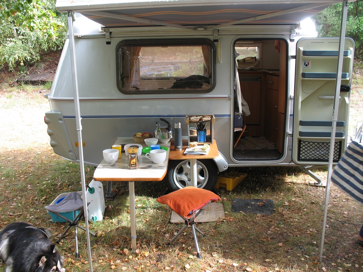 photos: - petit déj entre deux averses, (faudrait autre toile que le store, ça mouille)