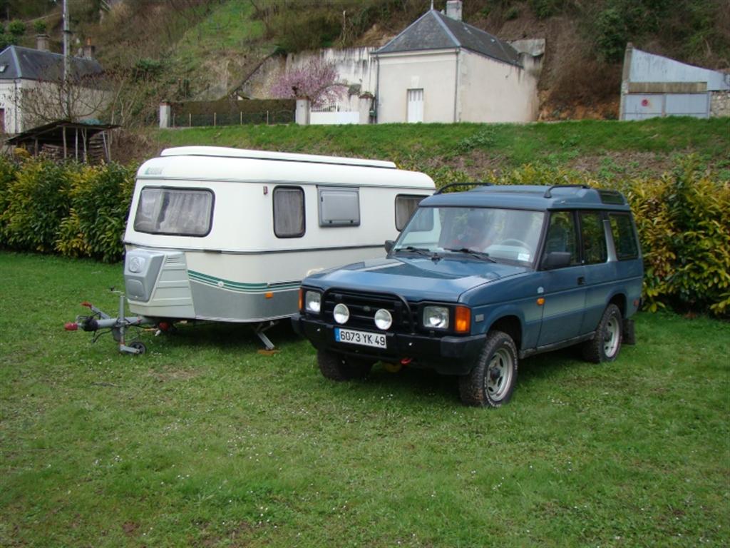 Modèle de caravane : Familia de 1992 + Defender 110 de 1998. Land 109 de 1972.