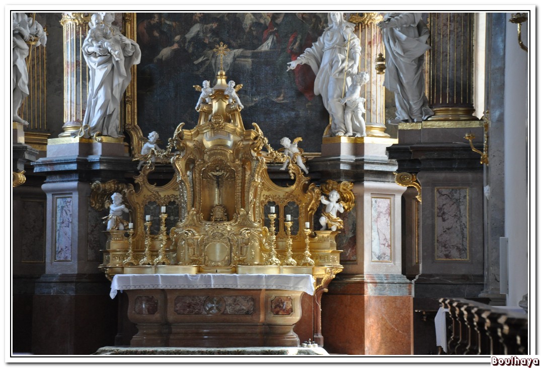 Je les écoute un quart d’heure puis je me dirige vers l’abbaye. Arrivé à la caisse, encore de la musique, de la harpe cette fois-ci. La harpiste ne doit pas avoir plus de 7 ans ; il a même fallu lui improviser un piédestal ; c’est ça la magie de Vienne !