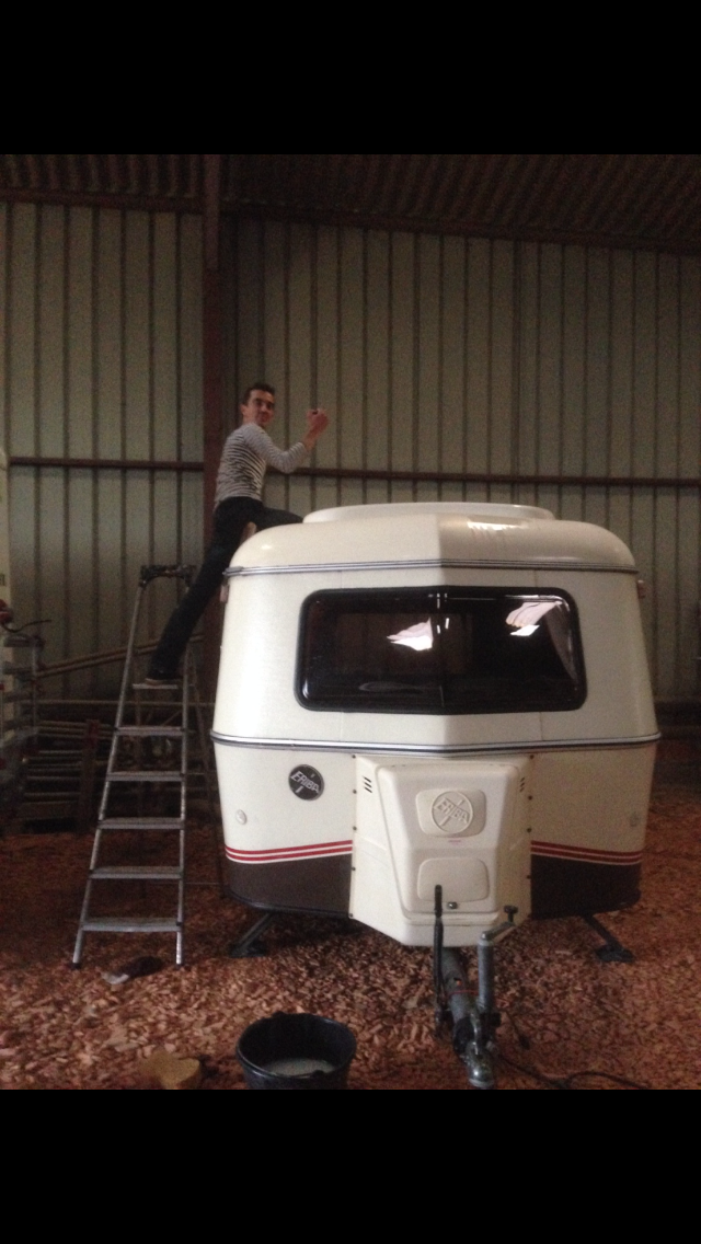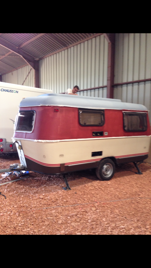 N'etant pas fan des couleurs, nous avions décider de la repeindre, et ayant toujours kiffé les Airstream, nous avons décidé de faire une Eristream