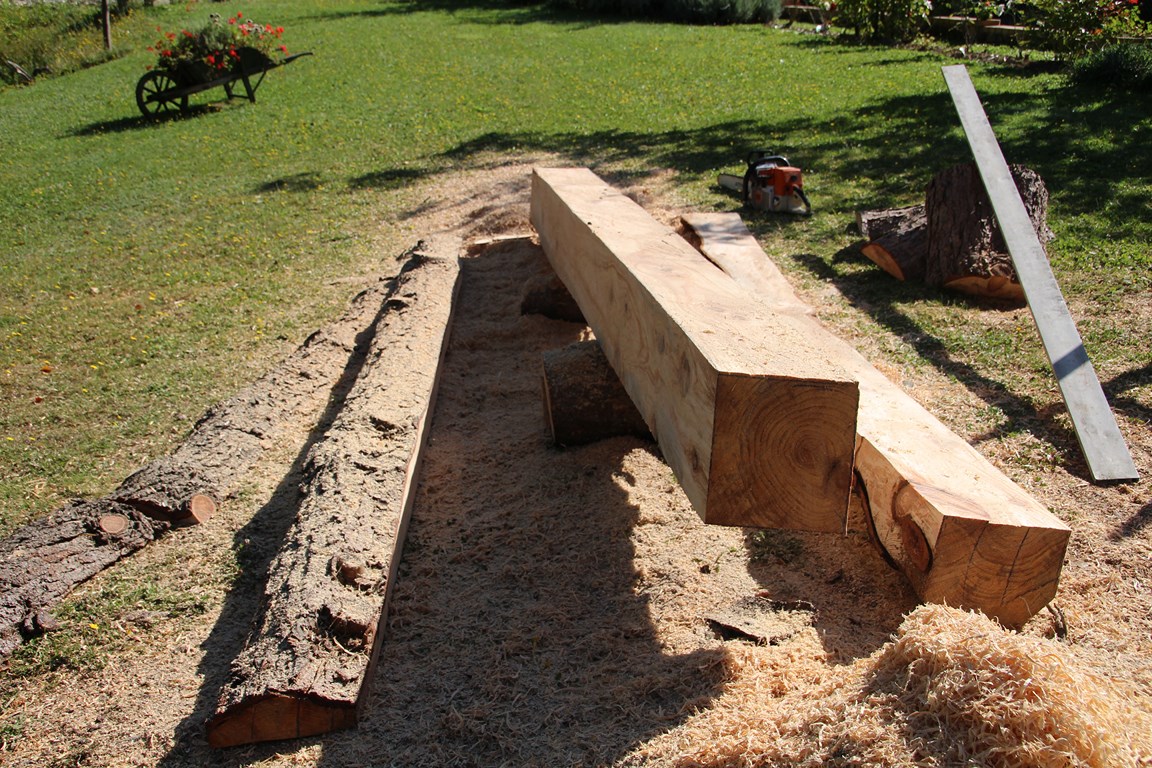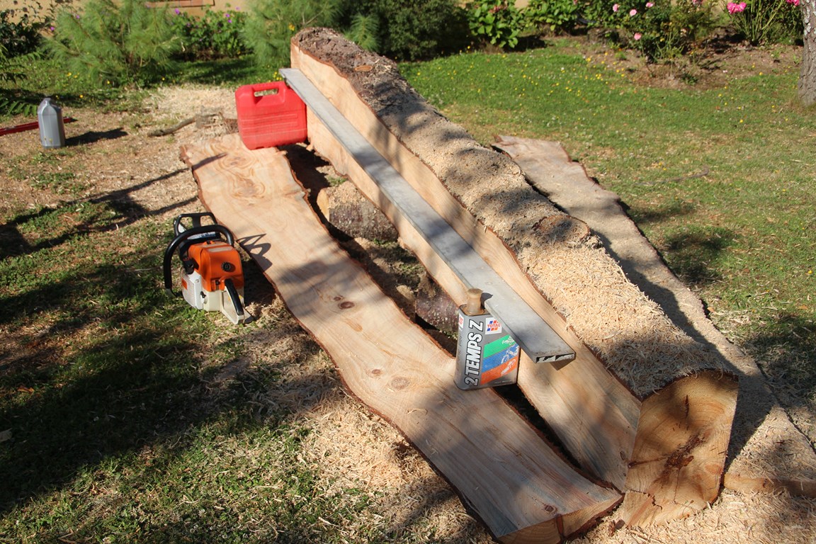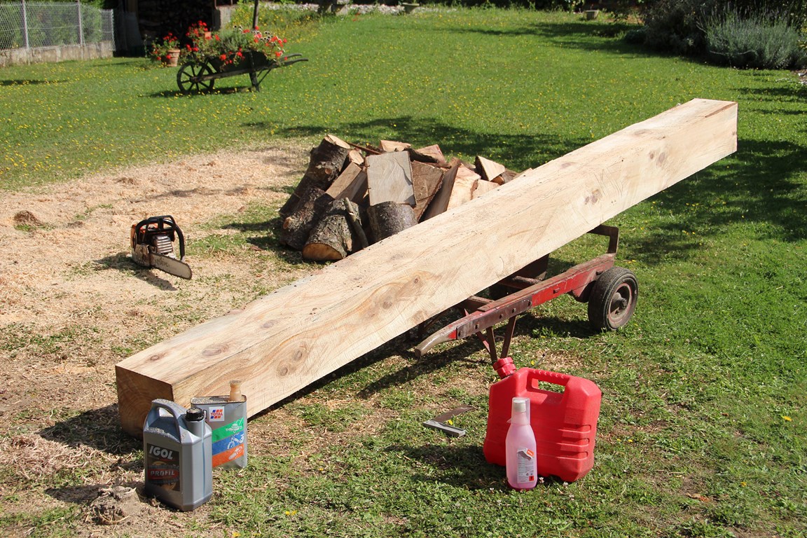 ça manque un peu de détails pour la réalisation de la poutre, je sais qu'il existe des systèmes en vente (gruminette) pour adapter une tronçonneuse et faire du sciage de long....