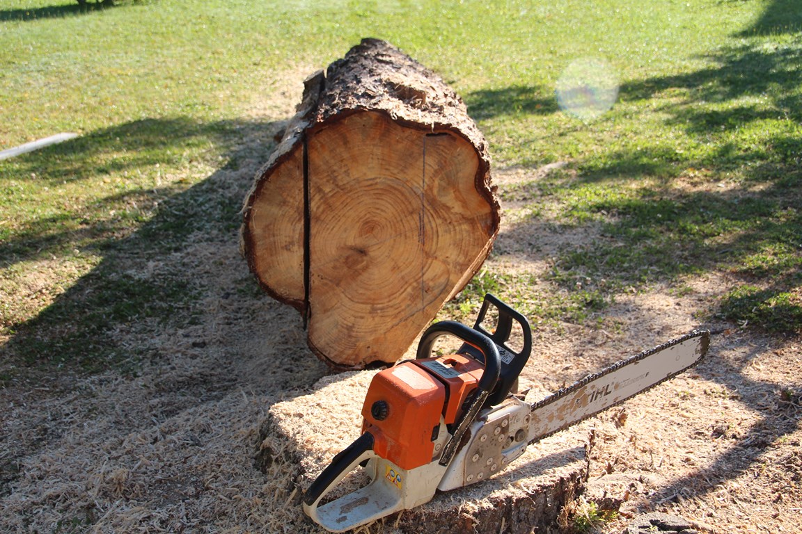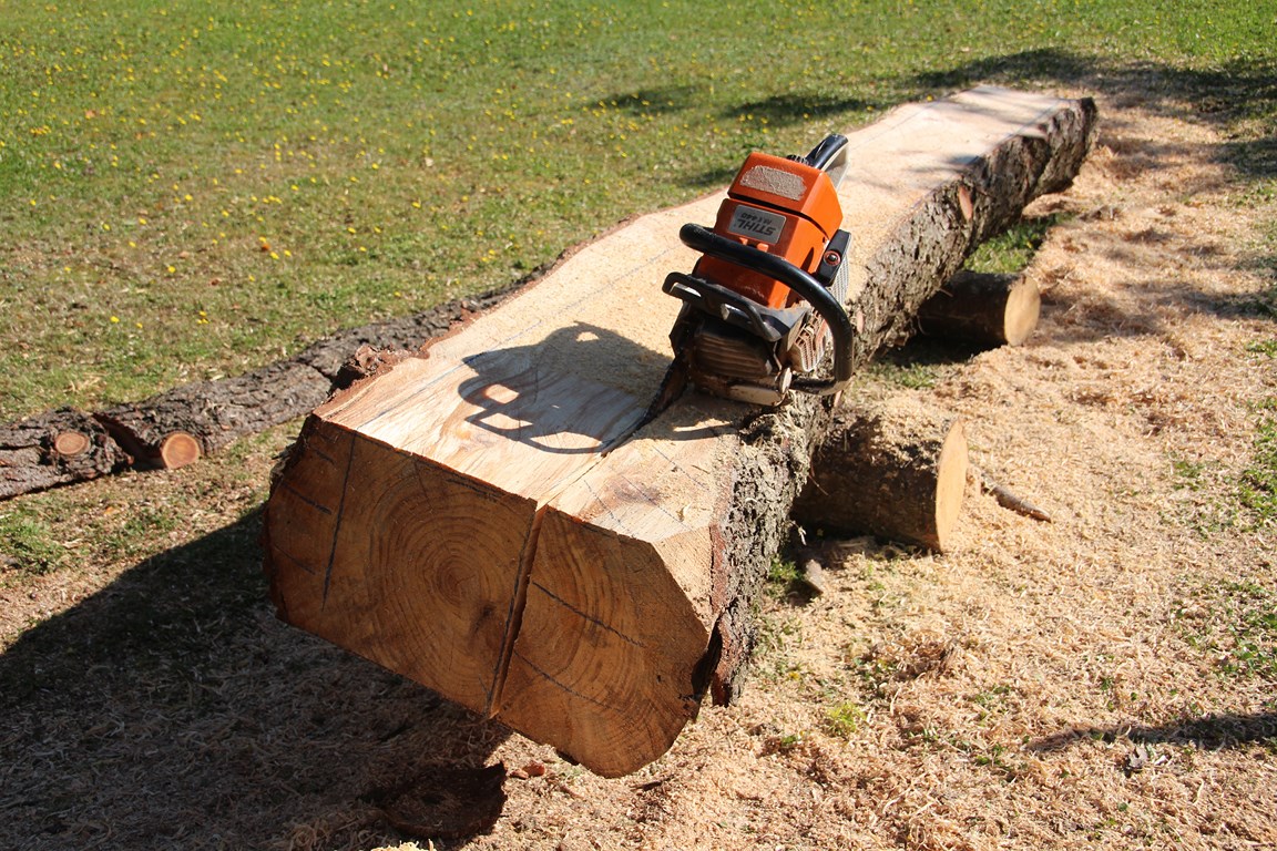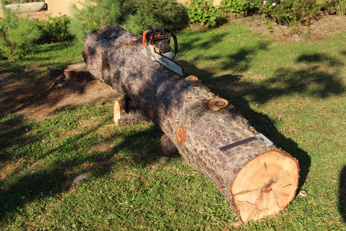 ) Fait "à main levée" avec une tronçonneuse "Sthill".