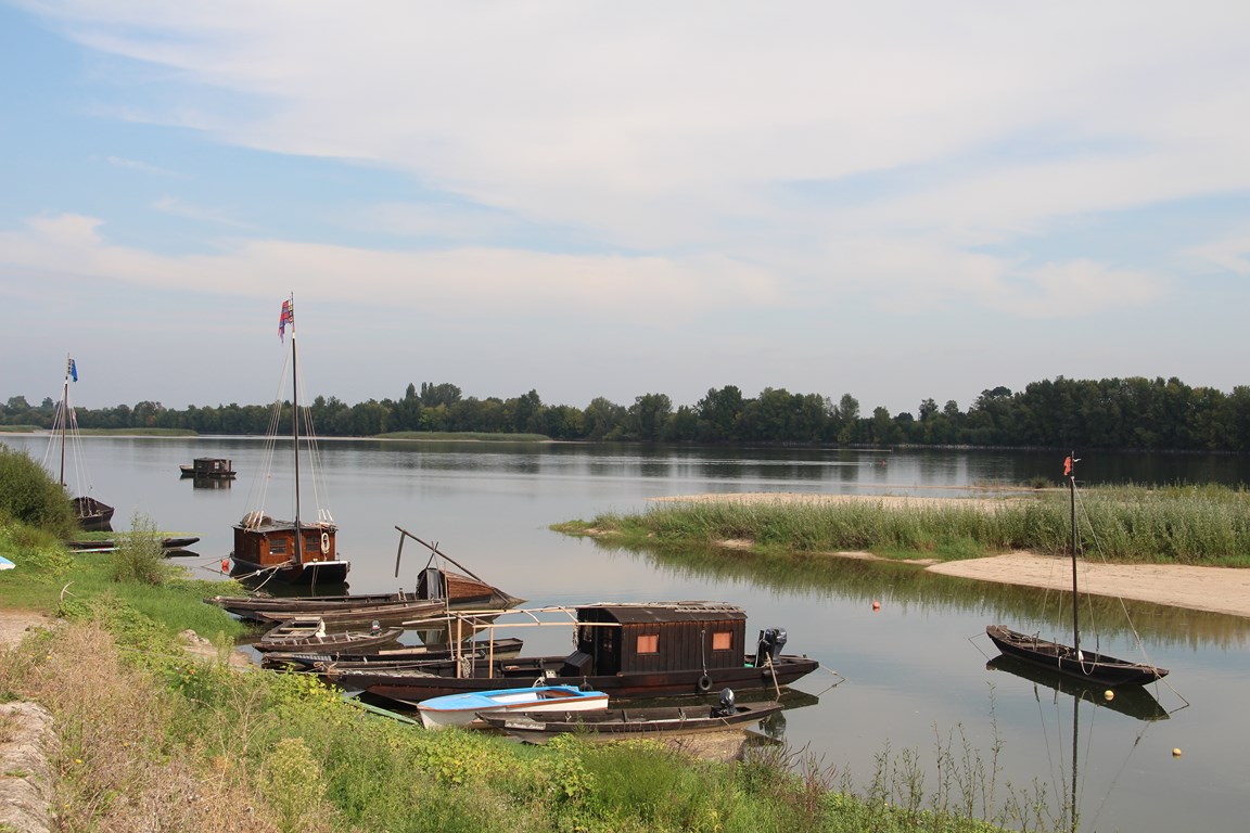 la Loire paisible en cette époque, les repaires des crues tout le long de notre balade nous indiquerons qu'elle est maîtresse de son lit.