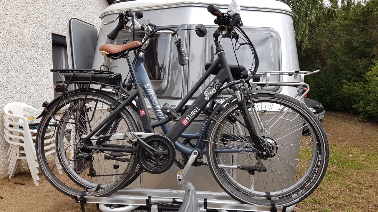 La concession Ulrich près de chez moi, monte ce type de porte vélo, c'est le modèle superb short (larg 49 cm), et apparemment, c'est ok pour 2 VAE. il existe chez thule le modèle Superb Standard (57 cm), mais trop large pour nos cagouilles et le smart (44 cm), mais lui est bien pour des vélos sans assistance, car les rails sont trop rapprochés.