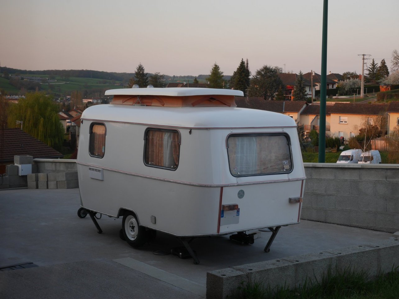 Le toit y passera un de ces week ends, quand la peinture des flancs sera bien dure. Il y a pas mal de boulot à l'échelle car il faut reprendre tout le gel coat au mastic puis apprêt puis laque. donc pas envie de risquer de rayer le dessous
