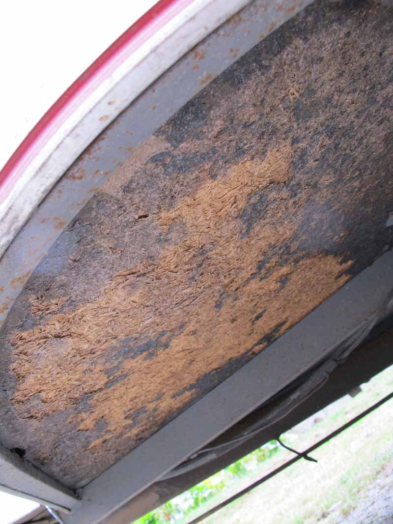 Bonjour . Sur ma pan familia de 76 ,c'était du contre plaqué mince au dessus et dessous du polystyrène . Si ce n'est pas mou , Enlève le blaxon ( très mauvais ) puis passe une peinture microporeuse . Profite aussi pour brosser tout ce qui est métal puis rustol et ou peinture anti rouille . Cdlt