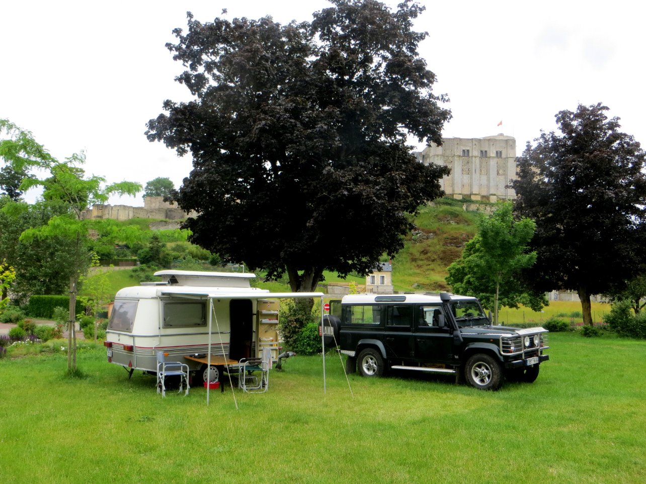Au camping de Falaise, au pied du château, ACSI 16€, après une nuit d'orage le temps retourne au : Sun :