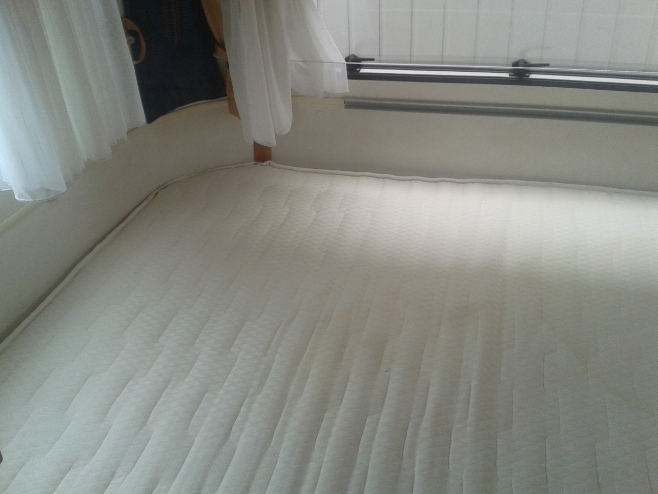 Par dessus on a encore un surmatelas que l'ancien propriétaire de mon : eriba : m'a laissé , il le mettait en place par dessus les coussins de la dinette.