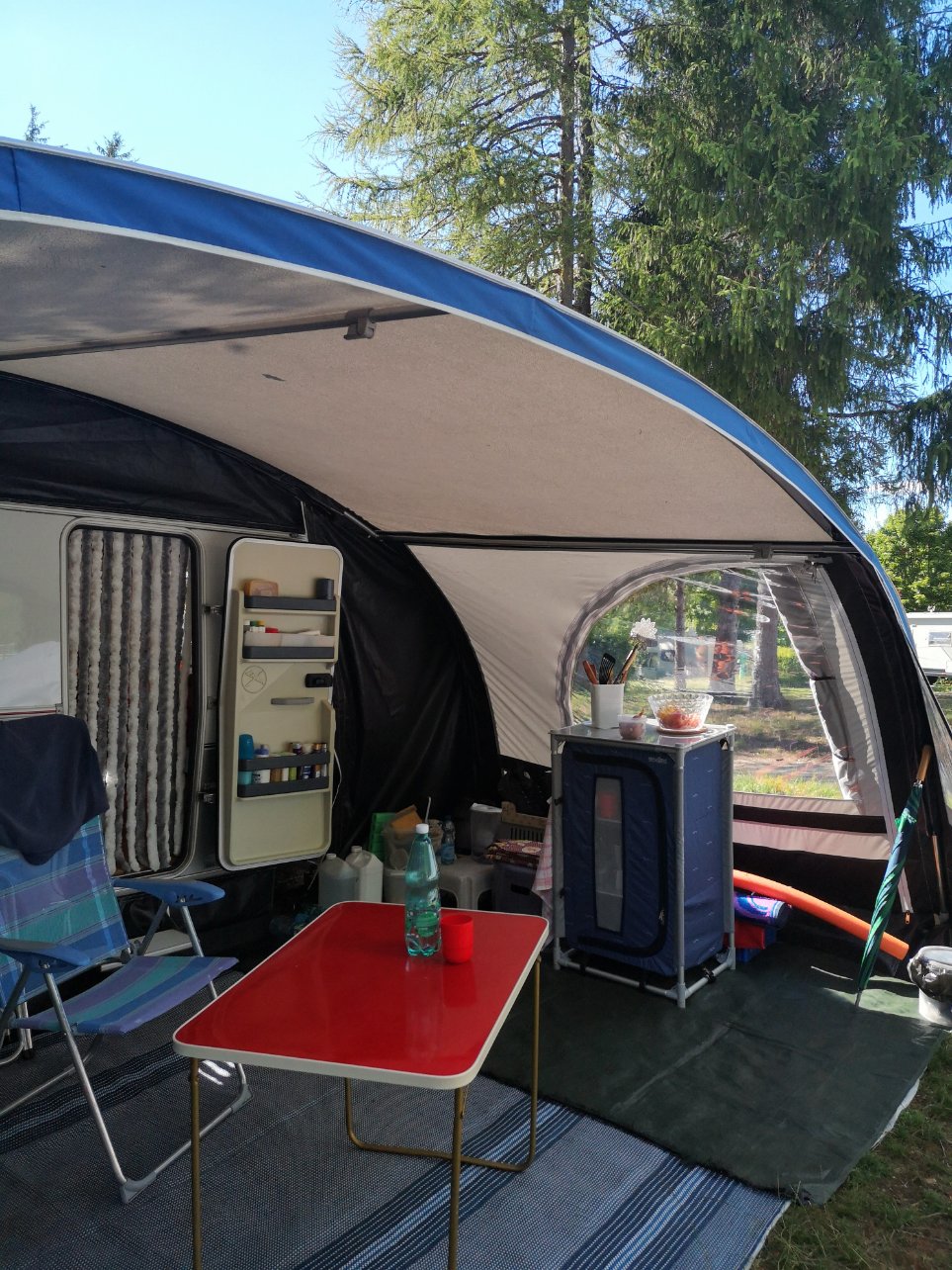 On repart mardi, je re-démonte cet auvent et je le mets en vente; c'est vraiment trop dur à monter pour moi. Dommage parce qu'une fois installé c'est top ; on vient de prendre le petit-déjeuner dedans.