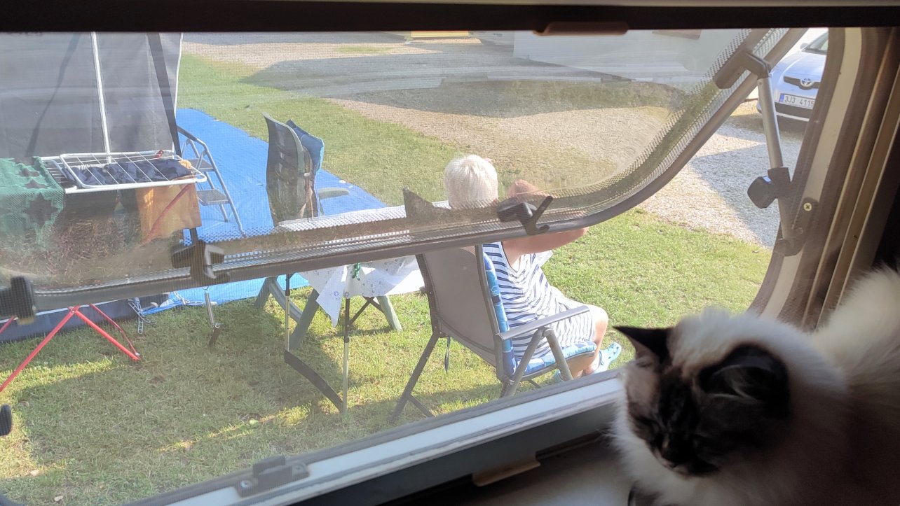 Un 1ère incivilité de la part de Tchèques au camping heureusement que nous comptions passer que deux nuits ici ! le matin à peine réveillés à 8h30 deux caravanes sont arrivées, gros papotages bien fort et l'une d'entre elle s'est mise carrément très près de nous ! comme ce sont des emplacements non délimités tout le monde fait comme il veut, si on avait mis notre grand tapis de sol déjà ils se seraient mis un peu plus loin, sommes partis la journée et le lendemain matin (jour de notre départ) ils s'installent avec table et chaises très près de nous ! si nous avions voulu déjeuner dehors on aurait pu se passer le café ! à peine attelés pour partir qu'ils mettaient table et chaises à notre emplacement ! photo du 1er jour puis celle prise à l'intérieur de la caravane de la fenêtre cuisine
