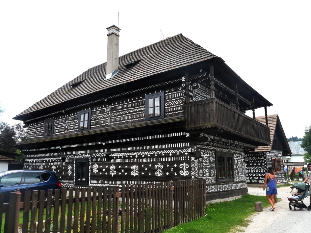 270 km et nous sommes en Slovaquie ! Camping Koš Agama près de Bojnice et son beau château, il fait très chaud et pas beaucoup d'ombre ! 31° pendant les 3 jours, il faut tél avant car il n'y a que 8 emplacements c'est attenant au terrain de golf; pour la douche chaude il faut y aller pendant l'ouverture mais c'est top ! pour les WC avons un code pour y accéder toute la journée. Nous commencerons nos visites en altitude pour avoir moins chaud en effet nous aurons même des nuages et soleil voilé dommage pour les photos, 25° on est mieux ! à une quarantaine de km Čičmany classé aux monuments historiques, tout le village est décoré avec des peintures traditionnelles sur bois, c'est superbe !