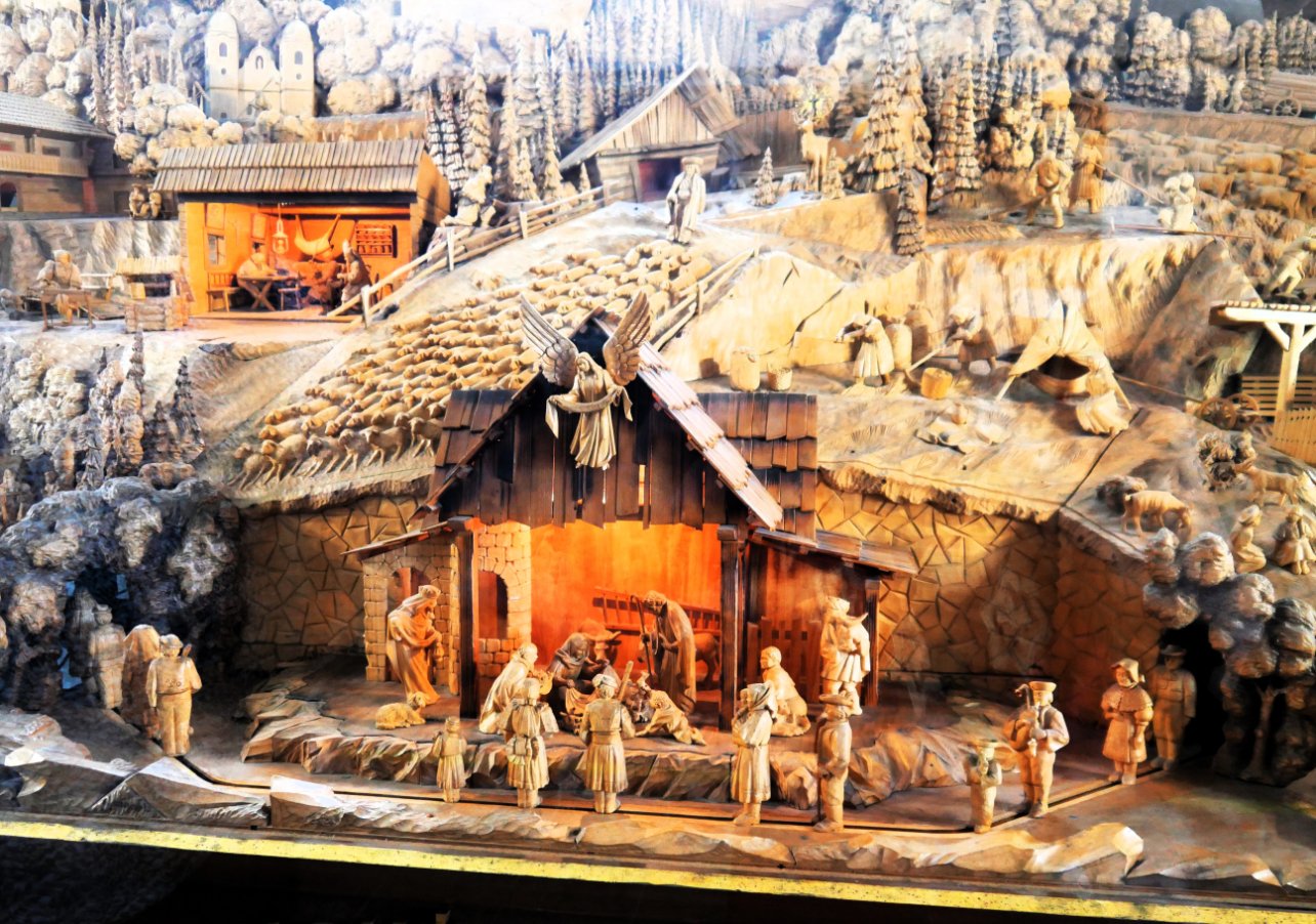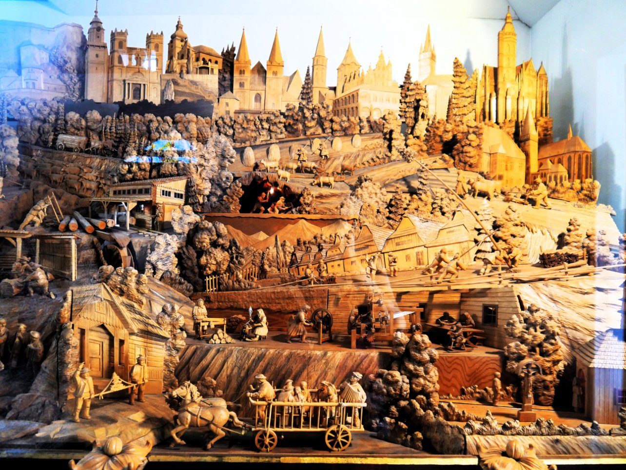 Une quinzaine de km plus loin nous allons voir une crèche en bois sculpté à Rajecká Lesná, Le Bethléem slovaque en bois est l’œuvre exemplaire, et unique, du maître – charpentier Joseph Pekara. Il a travaillé sur cet ouvrage pendant 15 années et ce chef-d’œuvre a été inauguré le 26 novembre 1995 par un évêque de Nitra, il se développe sur une longueur de 8,5 mètres pour une largeur de 3 mètres et une profondeur de 2,5 mètres. Il a sculpté dans du bois de tilleul, un tableau de toute la Slovaquie. Puis nous verrons un peu plus loin le chemin de croix.