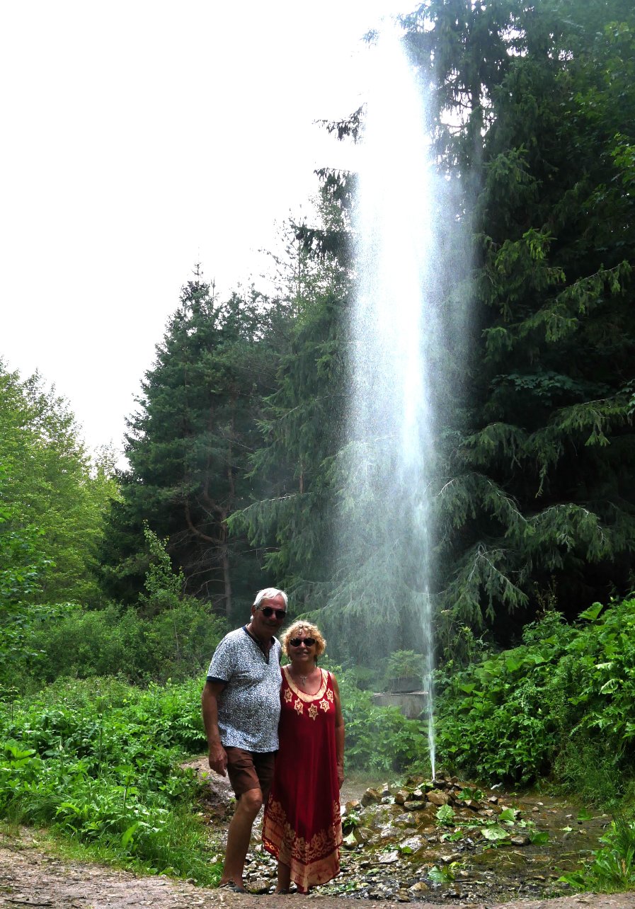 Et pour finir cette journée, le geyser quelques km plus loin dans la forêt, ce geyser n'est pas une création de la nature, le ruisseau s'échappe du pipeline souterrain et est relativement étroit. il est de 10 m de hauteur, des Slovaques bien sympathiques nous ont pris en photo ! Une glace sur le retour s'imposait, en Slovaquie c'est 1€ la boule mais vraiment elle faisait la valeur de 2 boules ! tout comme en Tchéquie il y en a partout ! et ils en mangent toute la journée !