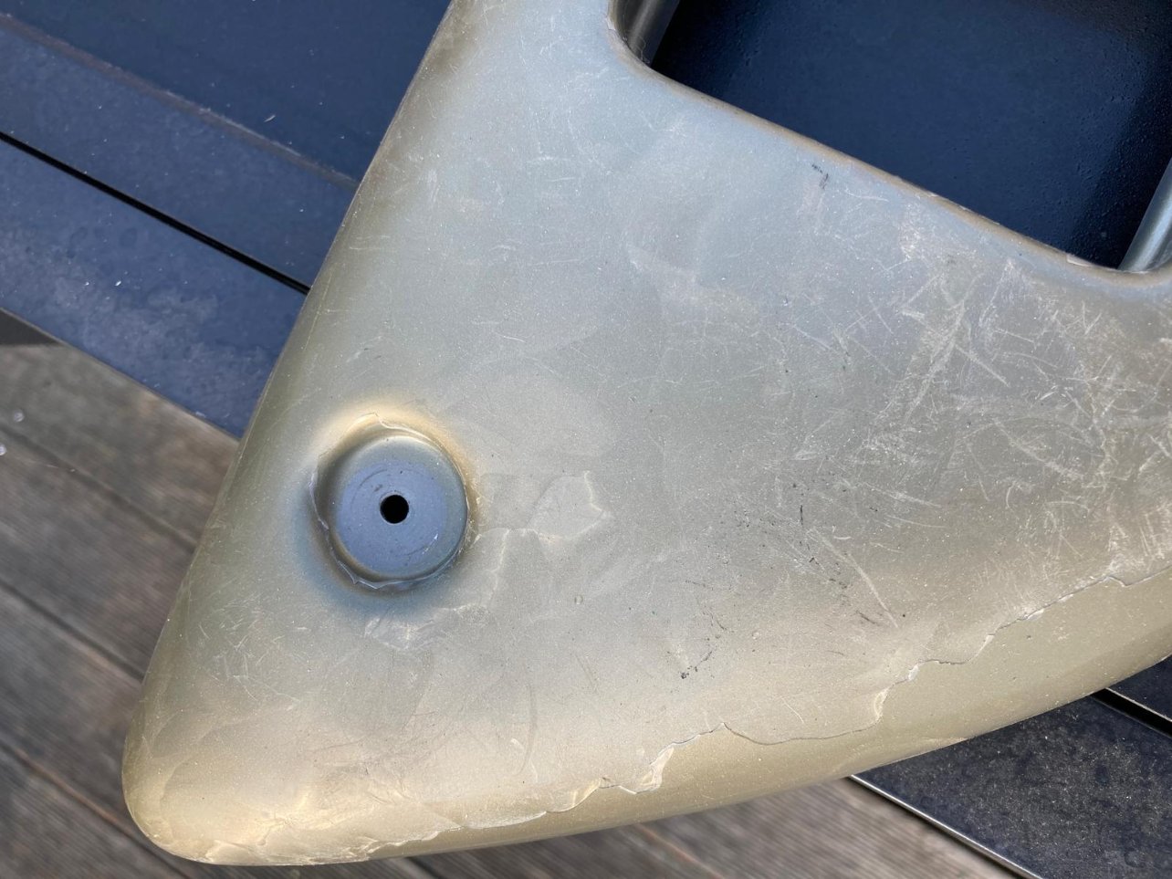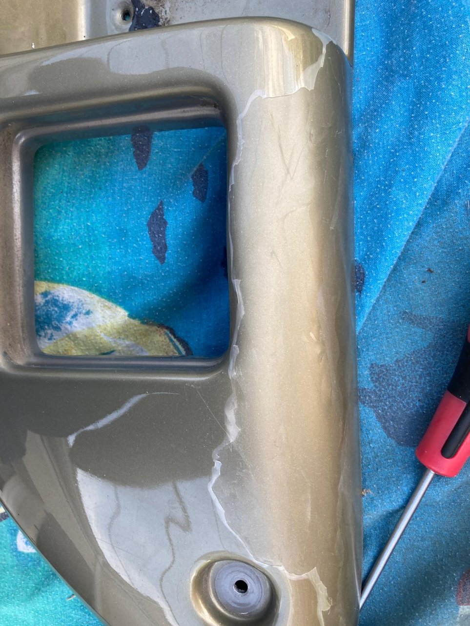 J'ai juste un petit truc esthétique que je veux régler cet hiver. Le vernis de l'enjoliveur de plaque à l'arrière craque et se décolle (on l'aperçoit sur la dernière photo). C'est moche. Je n'ai aucune idée de la méthode pour refaire cela. Comment enlever ce vernis et quel type de peinture prendre pour le repeindre.