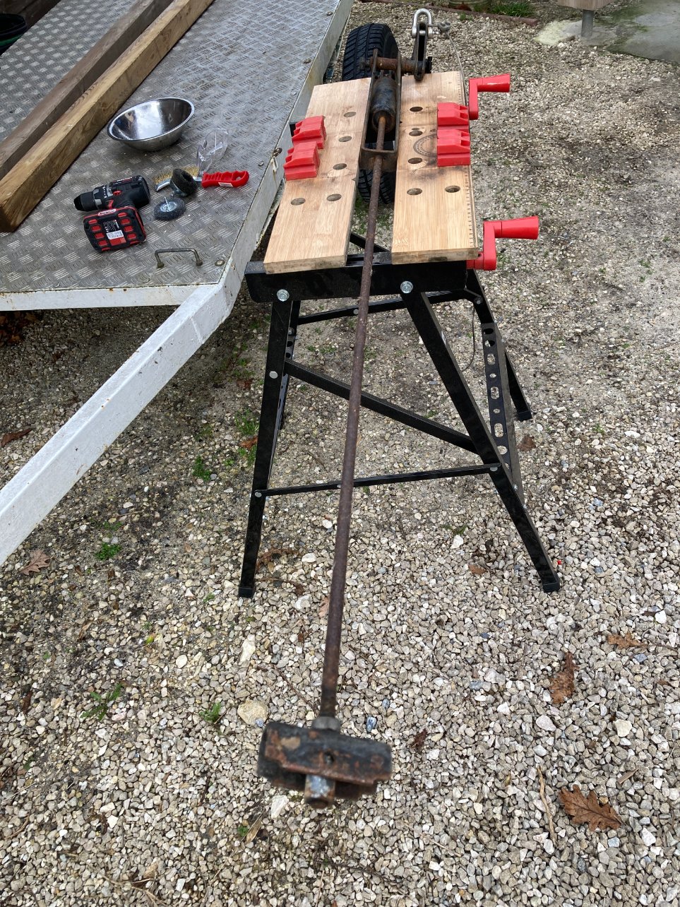 Vivement qu'elle soit sur ses roues pour la bouger régulièrement car on manque de place pour travailler sous notre petit abri.