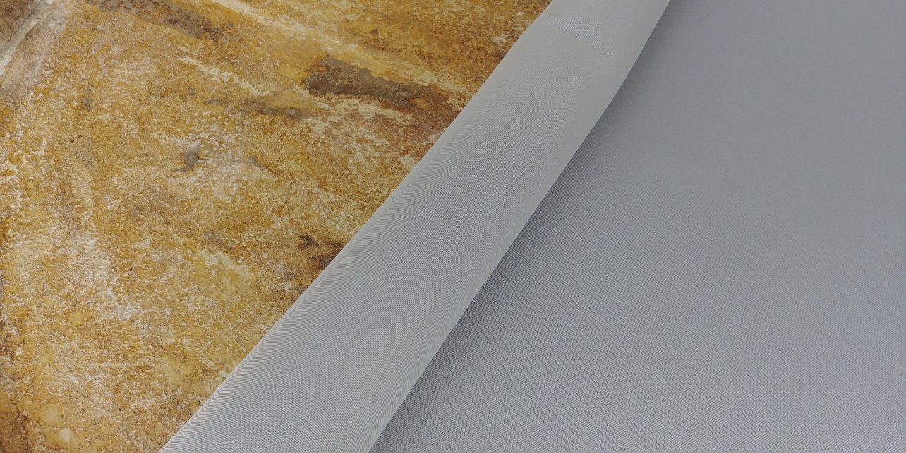 Pose du nouveau tissu pour le plafond de la coupole. C'est du tissu de sellerie auto. Avec un côté mousse et l'autre tissu tressé.