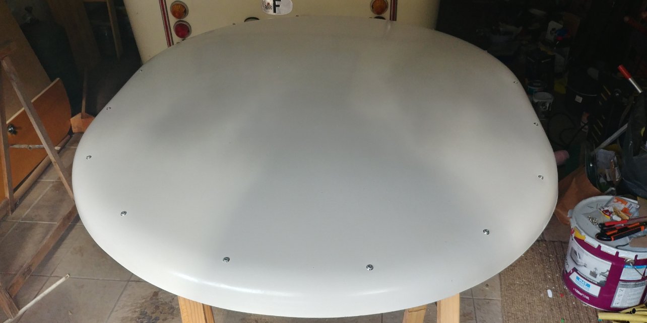 Peinture du toit champignon et vissage avec de nouvelle vis. J'ai mis à chaque trous un peu de joint silicone pour isoler.