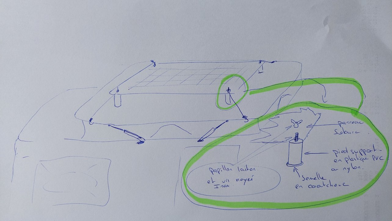 Le seul gros défaut de ton installation est que pendant tout le temps du voyage aucune charge de la batterie, sans compter que faire et défaire..... et monter sur un marche pied (escabeau) avec les risques que ça induit !!!![]()