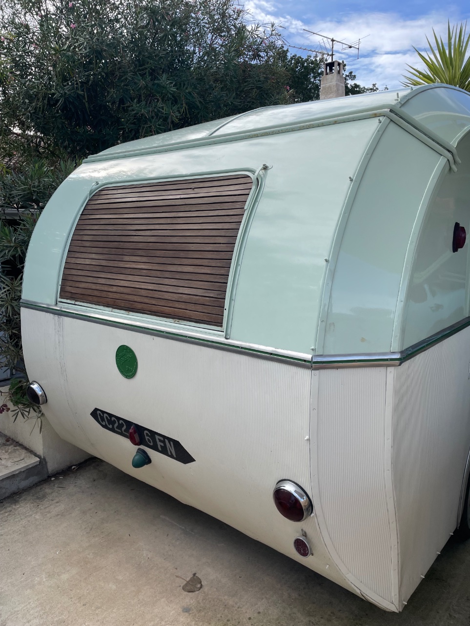 Une caravane vintage a souvent un lit en 120 de large mais au fond en travers, donc quand on dort