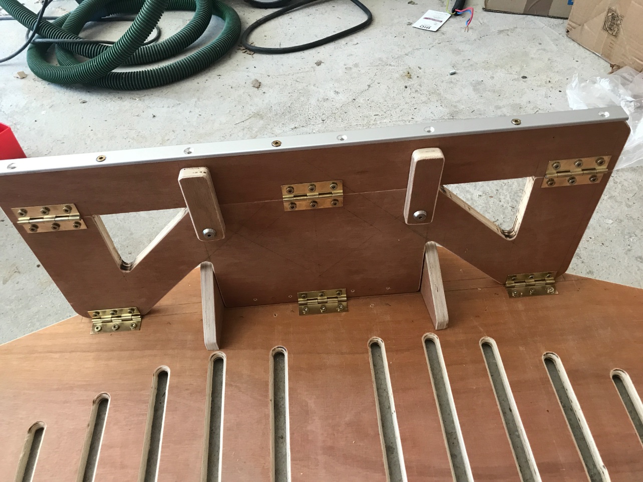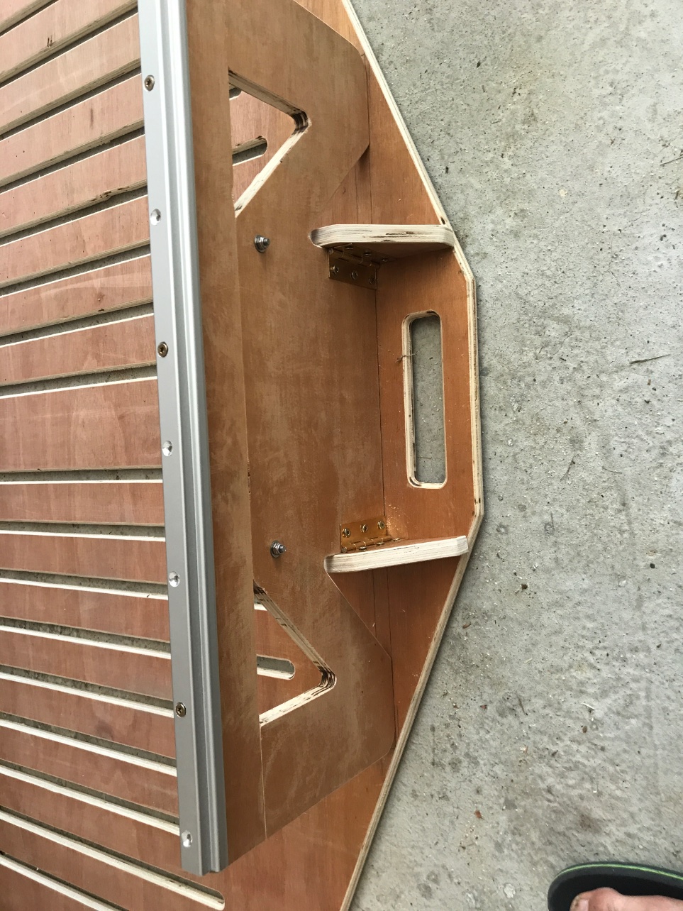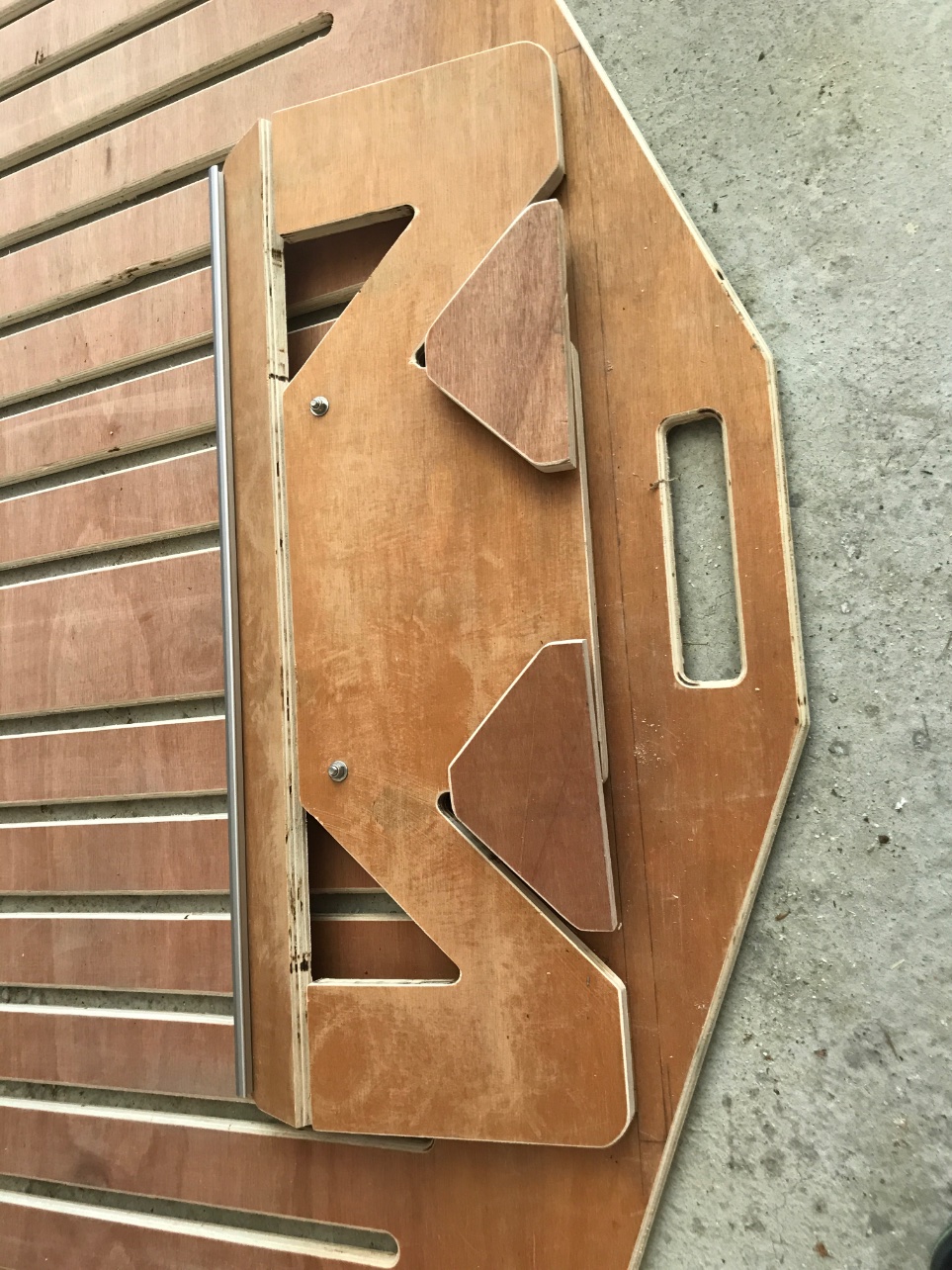 Découpe cp16mm environ 140x55 aux extrémités puis reduit a 71x60 au niveau du rail + encore un peu: