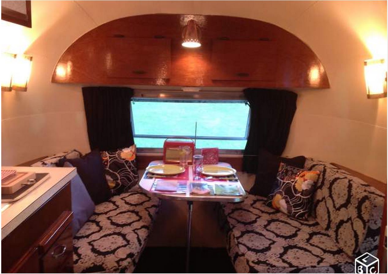 Airstream récemment restaurée, polie et lustrée. Etat exceptionnel (intérieur et extérieur). Tous éléments d'origine - Modèle très rare "Safari 22" de 1959 avec chambre au milieu, salle de bain arrière, cuisine centrale et dinette à l'avant.