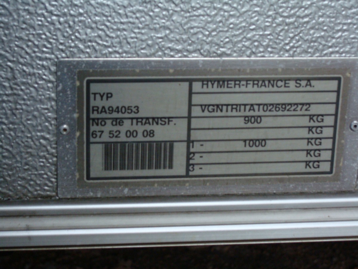 Ci joint photo de ma plaque Eriba Triton de 1998, sur ma CG il est indiqué en G1=814 et en F2=950 ...ce qui ne correspond pa avec la plaque fixée à l'avant de la caravane ! pouvez vous me renseigner ?