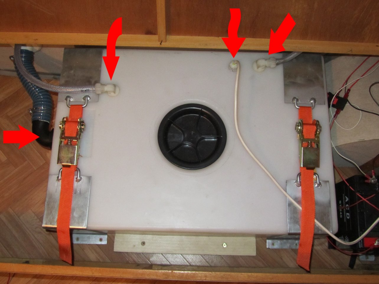 Si pour le blanc tu devrais pouvoir passer le bras dans l'ouverture pour visser les écrous des différents raccords, (tuyau de remplissage, tuyau de mise à l'air libre, tuyau de la pompe, fil de la pompe) ça me parait plus "chaud" pour le noir......... J'ai donné et revendu le réservoir sur LBC !!! Heureusement avant de le percer