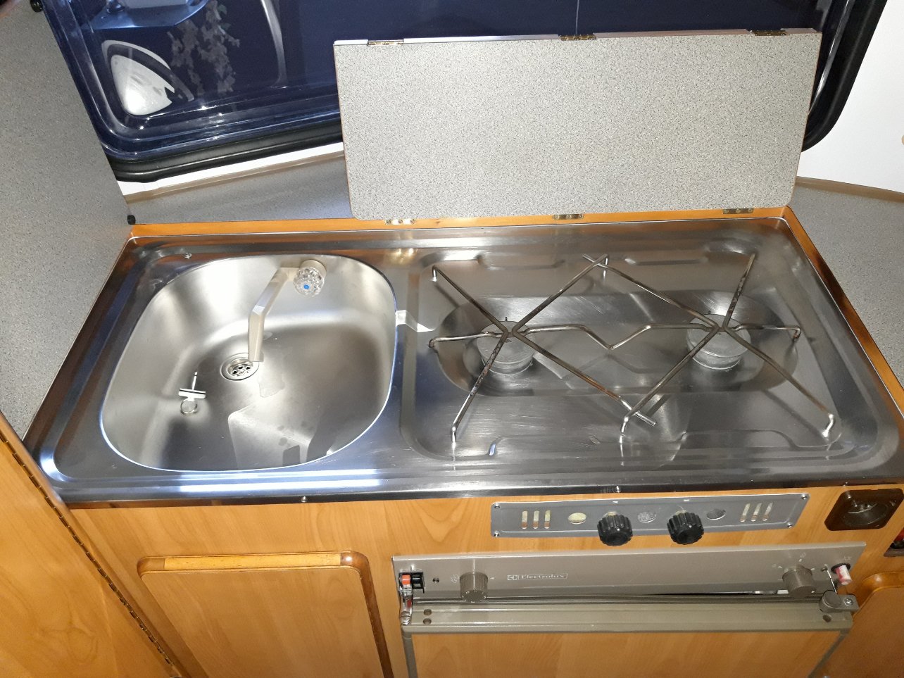 Travaux que nous avons réalisés depuis l'achat : demontage et remontage de tout l'intérieur, restauration des meubles et application d'un vernis satiné en bombe, déshabillage de tout les panneaux intérieurs inférieurs + isolants, redresser les bosses des panneaux alu, traitement à la peinture antirouille des tubes, remontage des panneaux et peinture de l'intérieur, remplacement de la baie fixe avant (suite casse lié à une chute d'une poutre sur la baie 😡), fabrication de l'outil pour remettre la clef de joint, décapage et passage à la peinture antirouille du châssis, fabrication dune barre de seuil en inox, installation en cours d'un réservoir à eaux grises de 40 litres sous châssis, réflexion des assises en mousse Bultex + housse, fabrication d'un panier pour la roue de secours, installation d'un porte vélo...et encore quelques bricoles.
