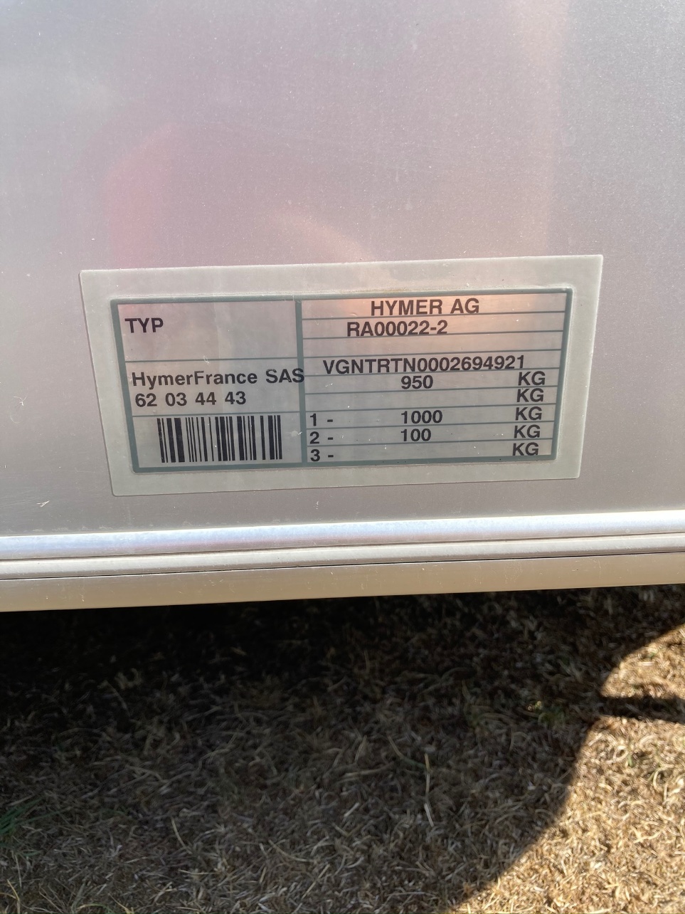 500 Kg force de l'essieu (certaines caravanes ont un essieu de force supérieur au poids en charge, ce qui permet, moyennant finances, de changer le poids en charge).