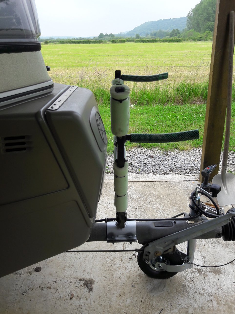 Et le poids en hauteur, pas le plus recommandé, pourquoi ne pas mettre un support sur la fixation de la roue jockey, avec une boule de 50 et prendre un porte vélo standard pour fixation sur boule, comme beaucoup l'on fait ici !!!