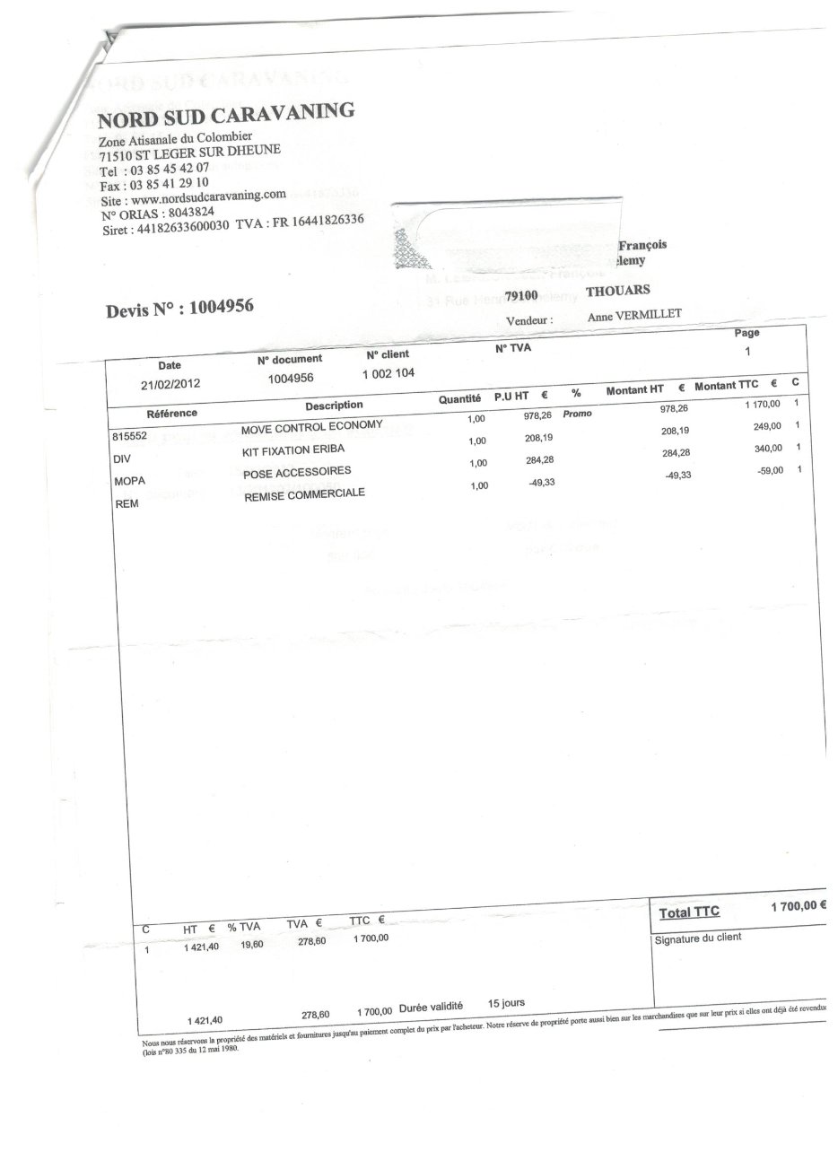 J'ai envoyé il y a quelques jours un mail au concessionnaire Eriba le plus proche de chez moi, à côté de Sens, dans l'Yonne, et voici la réponse que j'ai reçue