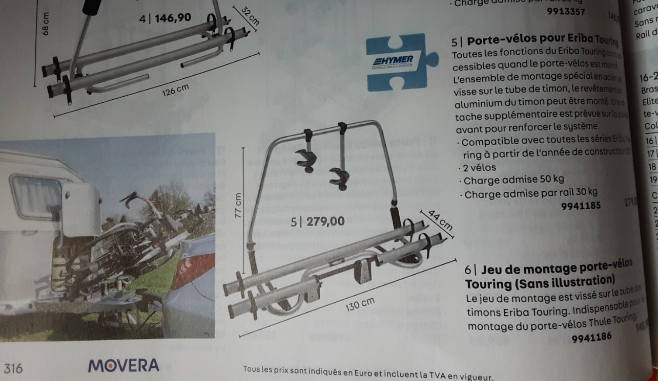 C'est pas faux J-Paul, sous entendu un vélo sur la flèche (timon) un bon porte vélo thule va le supporter, l'autre dans une housse soit dans la cara soit dans la totomobileLes Comtois a écrit : mer. 6 avr. 2022 20:05 Benjamin, leurs vélos sont à assistance électrique. Donc il faut un porte-vélo adapté, posé sur le timon pour supporter le poids des vélos. Comme nous. Chez Thule ils ont, mais l'adaptation Eriba coûte un bras. Donc à fabriquer soi-même ou avoir une connaissance pour le faire.