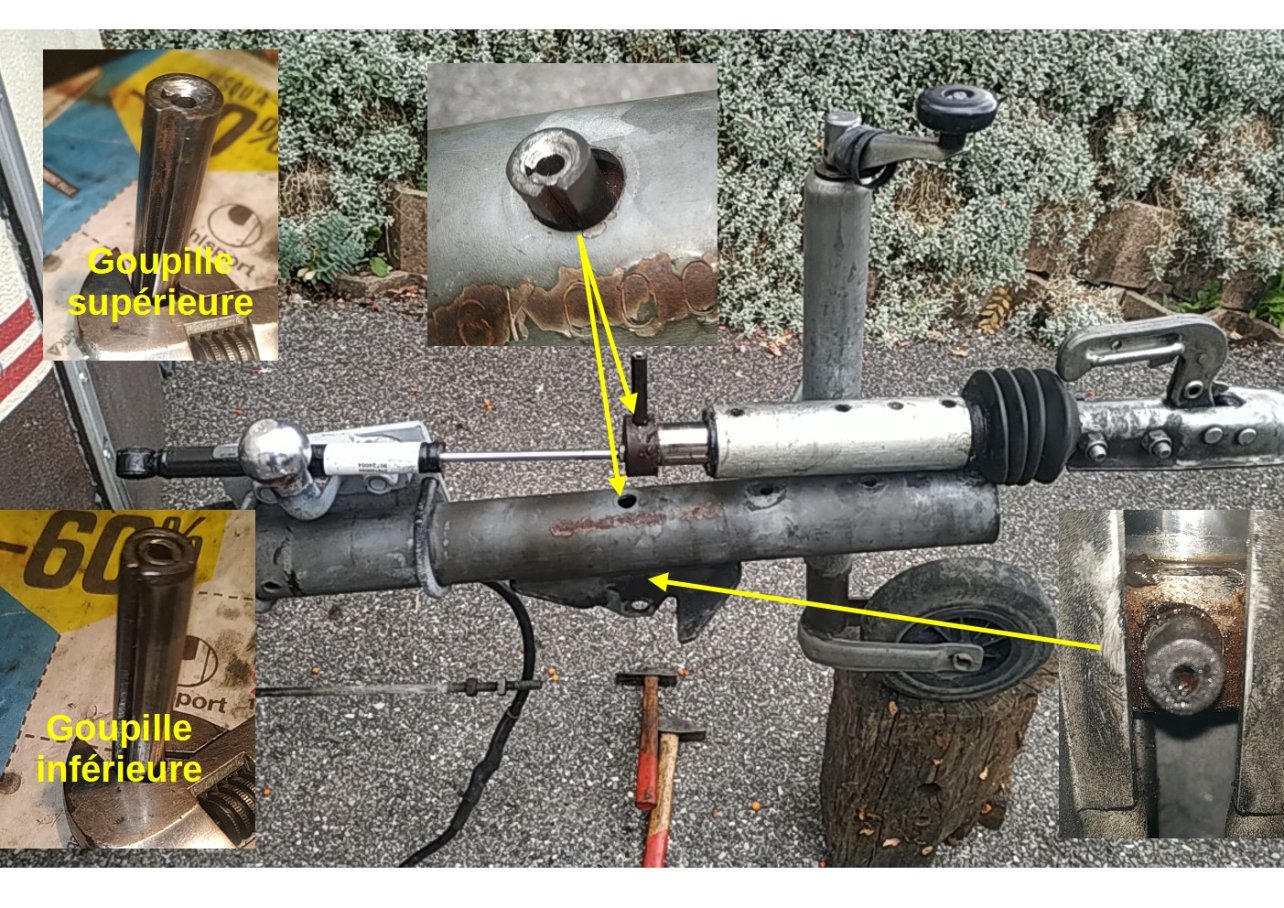 Note sur la photo goupille, elle n'est pas parfaitement cylindrique mais légèrement conique en entonnoir vers le bas... Du coup, il est plus judicieux de la sortir vers le haut en chassant du bas...