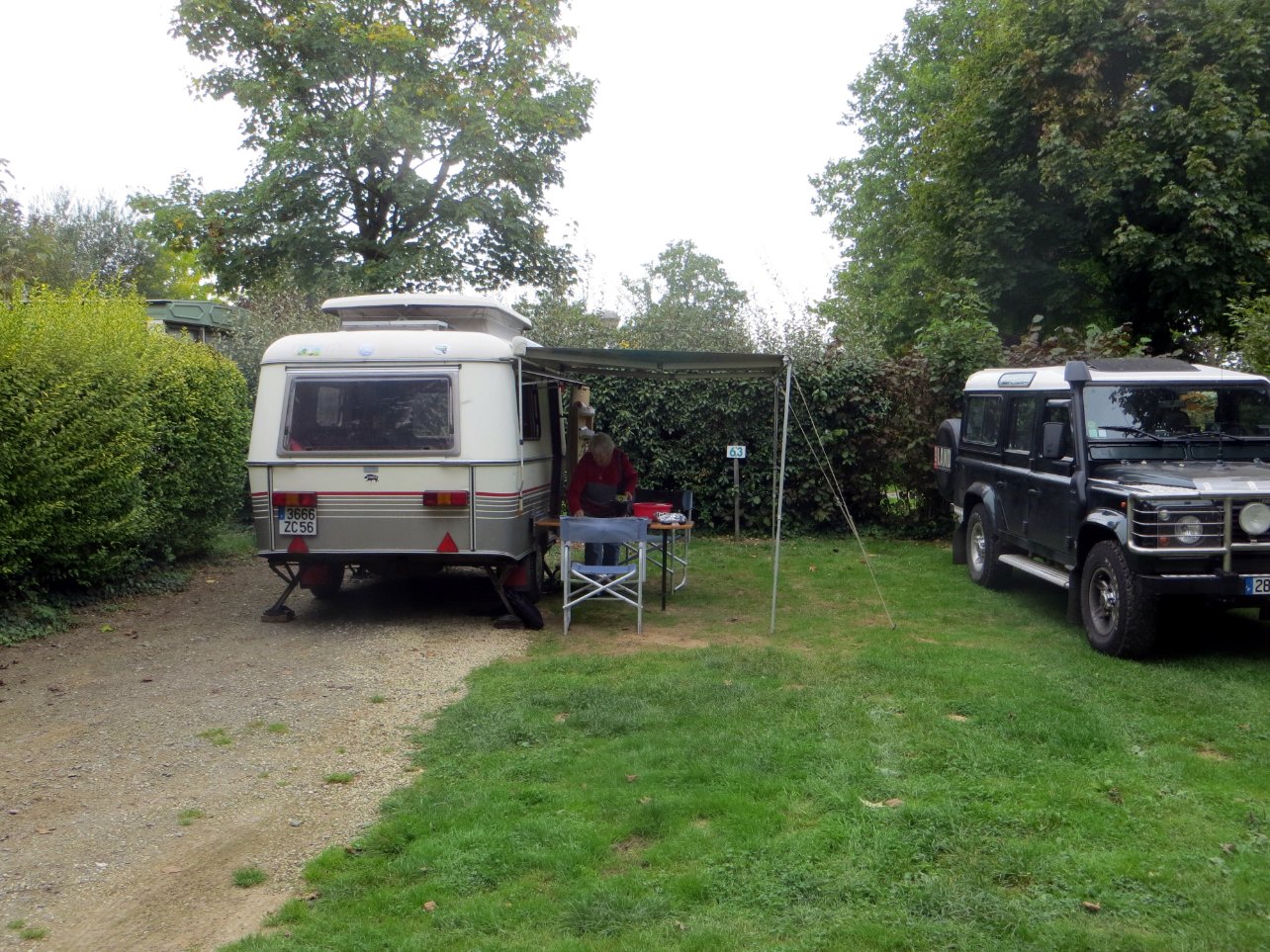 Notre emplacement au camping*** "Domaine des peupliers" de Tinténiac, 20 Km au nord de Rennes, camping ACSI à 18 €.