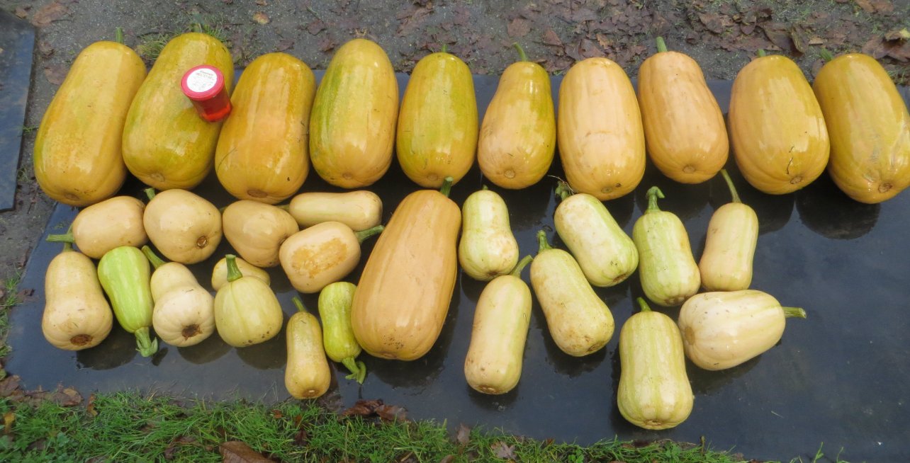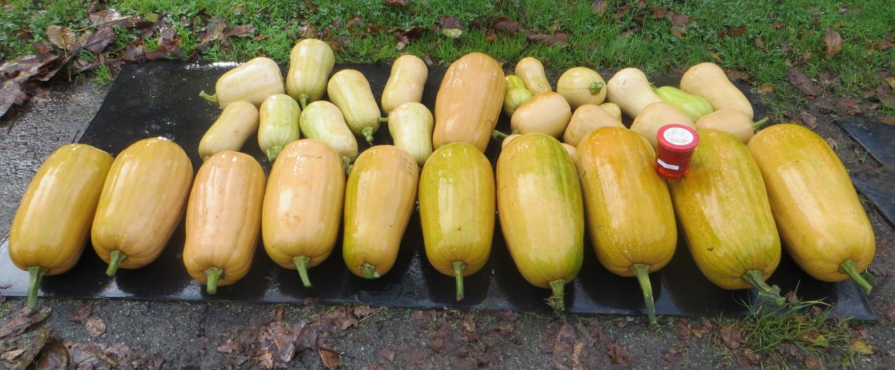 Récolte des butternuts, avant les gelées, + de 70 Kg dans les 10 + gros, les deux plus lourds, 8 Kg chaque...