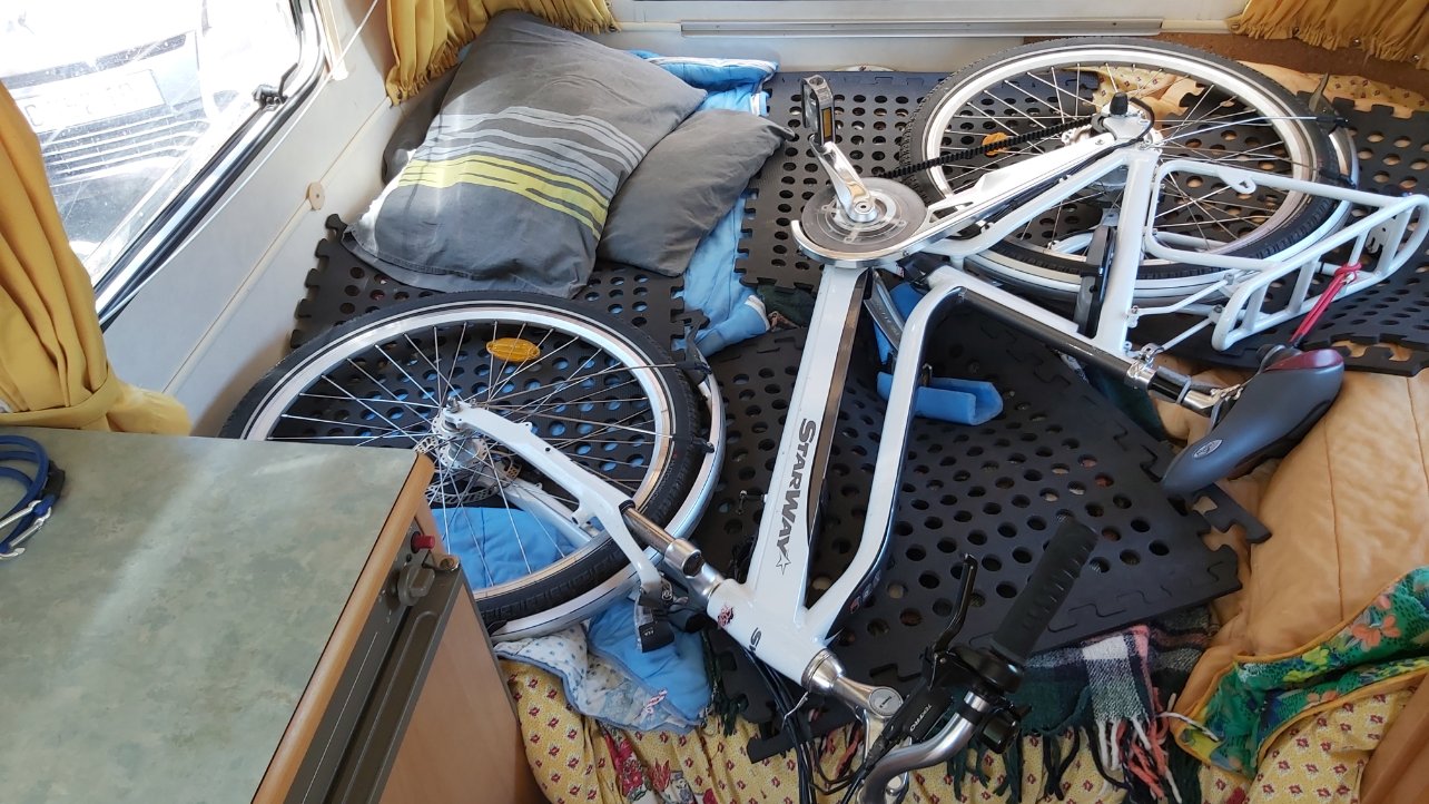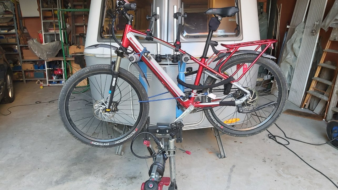 Vous m'avez fait un peur je l'avoue dans ma présentation à propos du porte vélo à l'arrière. Nous avons 2 vélos électriques, nous l'avons acheté en partie pour ça aussi. Nous voulions une caravane compacte pouvant porter nos vélos. Nous n'avons pas suffisamment de place devant, voir photos.