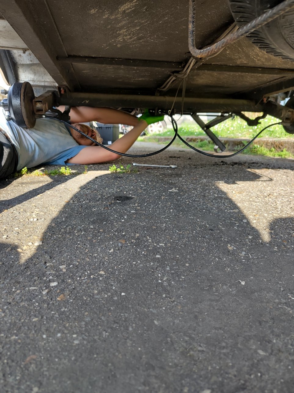 Dans la foulée j'ai nettoyé les filets des crics qui étaient couverts d'un mélange de terre et de graisse.