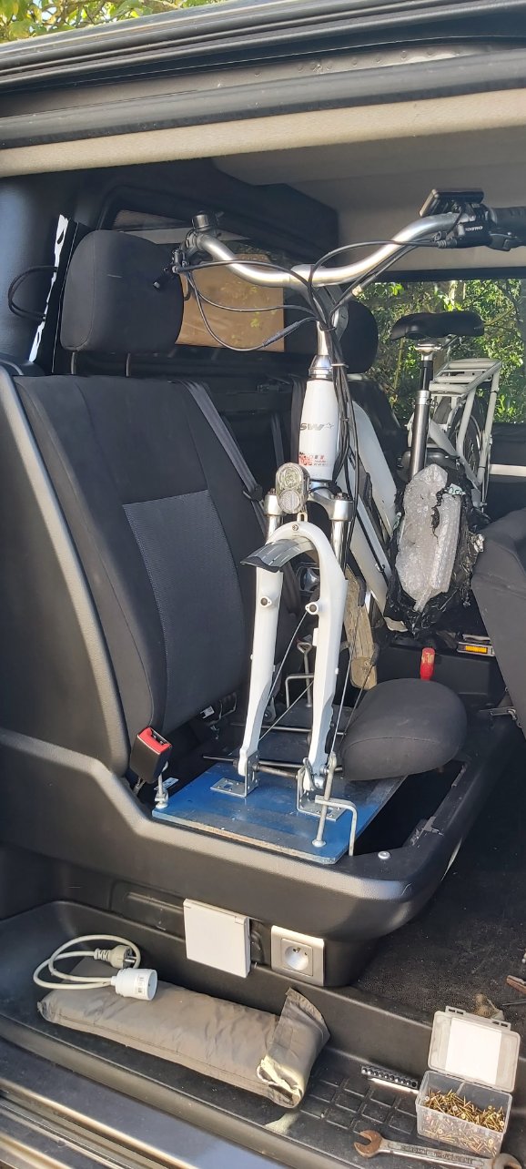 On est rentrés d'Allemagne avec donc un VAE derrière et un devant la cagouille, ça allait, mais on est vraiment déterminés à démonter le porte-vélos arrière et à faire autrement.
