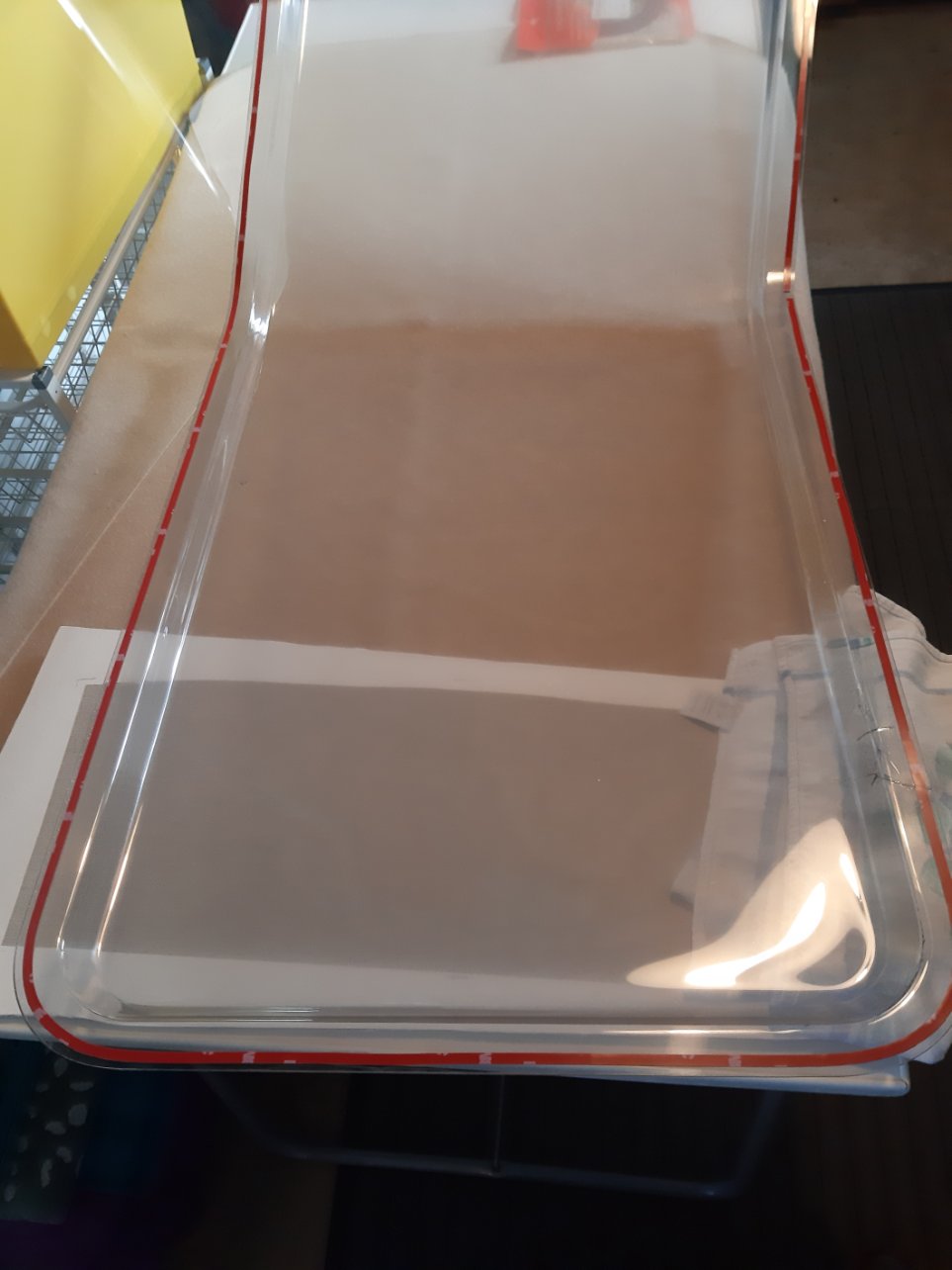 Pose du scotch 3M, 3mm double face et repose des deux vitres entre elles. (c'est sans doute la partie la plus dure, pour faire correspondre les débords...on était trois pour le faire).