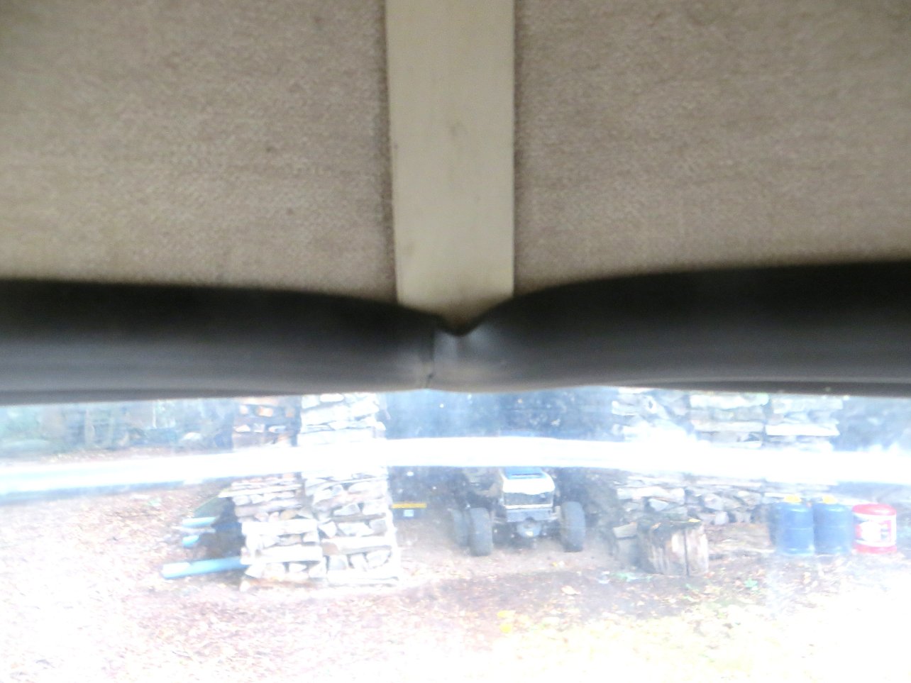 Un joint partiel ( Sikaflex) était présent en partie supérieure et j'ai constaté lors de l'entretien préventif du châssis/ plancher, un point avant de celui-ci ( 15 cm2) qui avait certainement été infiltré. ( Sachant que la caravane dormait sous bâche micro perforée depuis 6 ans avec comme seule utilisation, un mois d'été, je ne sais de quand ça datait.)