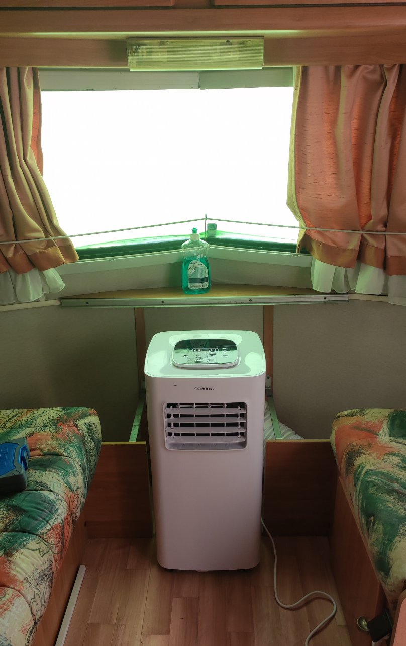 Je l'avais vu ce petit climatiseur, il est sympa. Mais alors, tu as été obligé de faire un gros trou pour l'évacuation de l'air ?